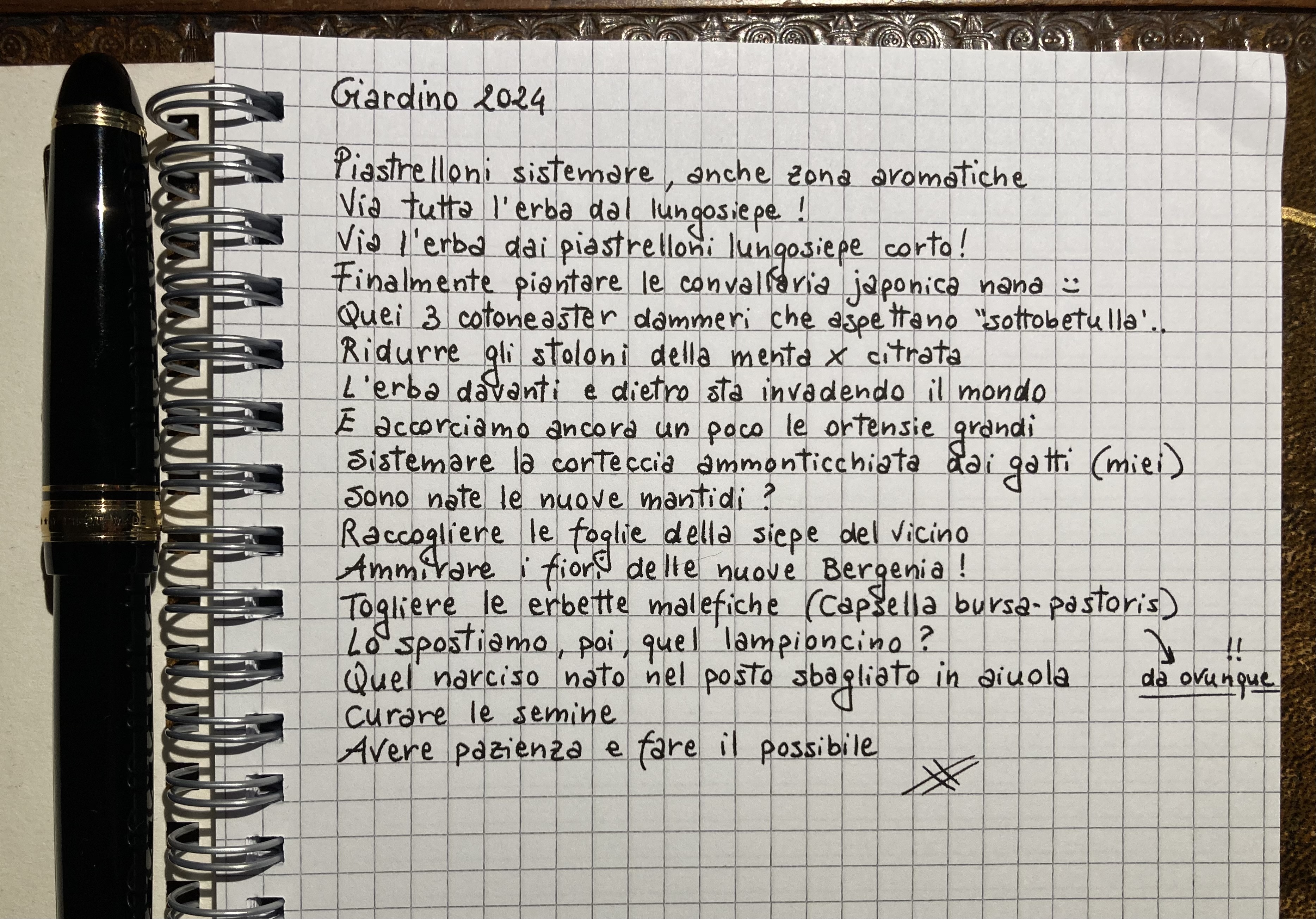 Un pennino in buone mani è un pennino felice e qui la mano è molto buona!Silvia1974 ha scritto: ↑sabato 10 febbraio 2024, 18:54 Riprendono i progetti in vista della primavera. Ormai il giardino ha preso il suo assetto generale e da ora in avanti solo manutenzione e.. pazienza che le piante crescano come previsto![]()