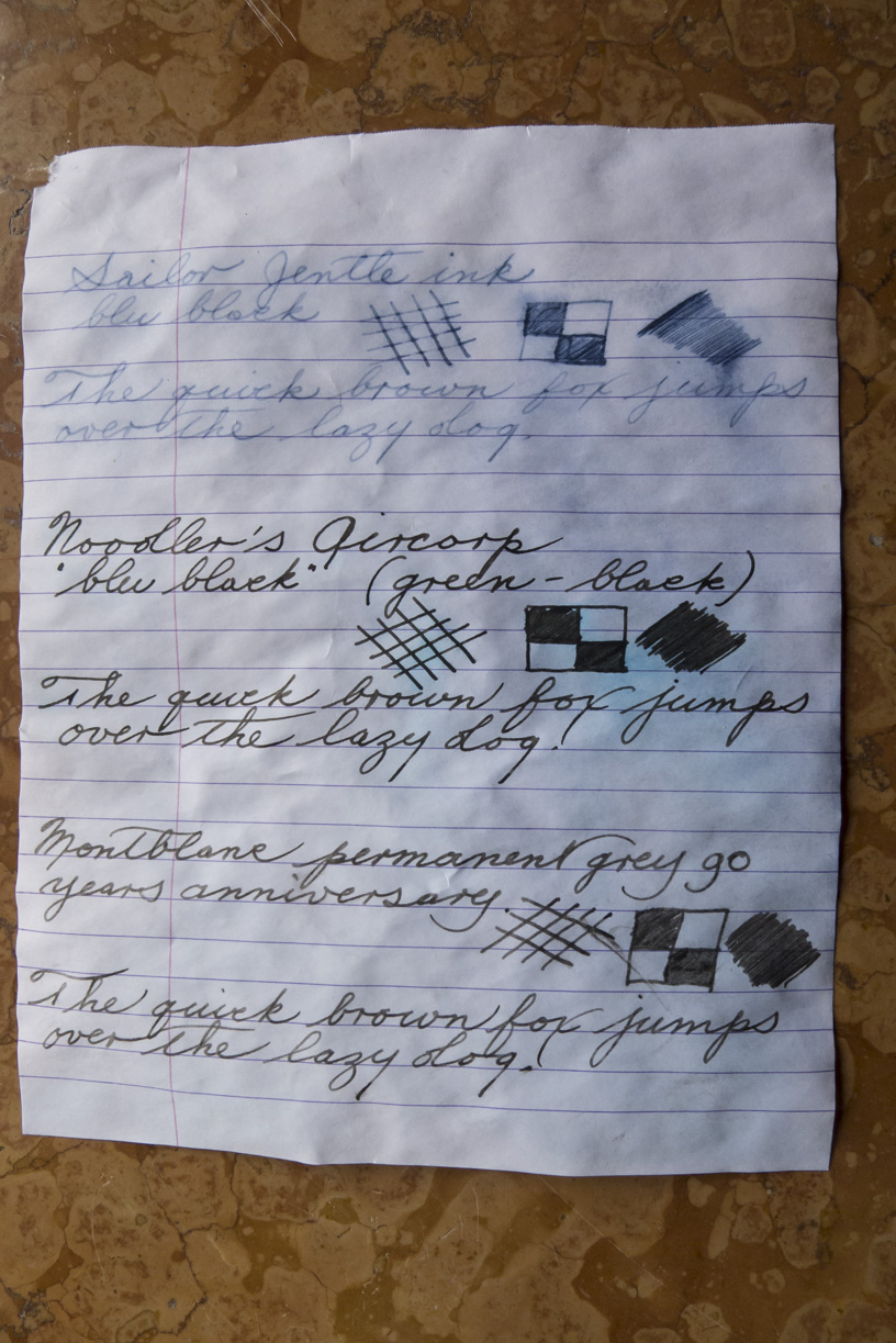 Soffrono, però, dello stesso difetto dei Noodler’s Bullet proof che ho provato: i colori sono opachi e molto spesso sono anche slavati, smorti.