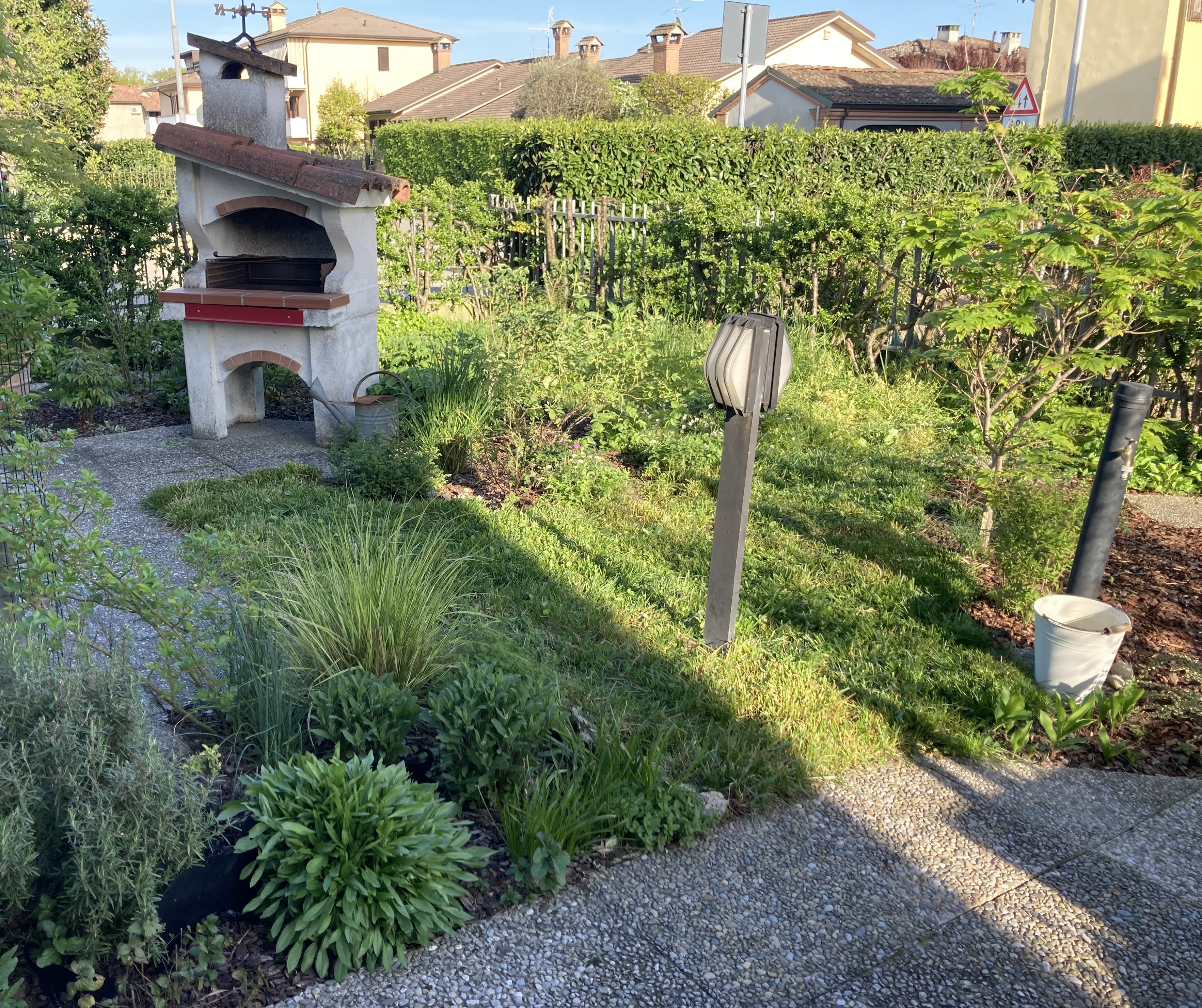 Domani proseguo con la deforestazione manuale del lungosiepe che va verso il dietro: c’è talmente tanta erba che non si vedono i piastrelloni per camminare.