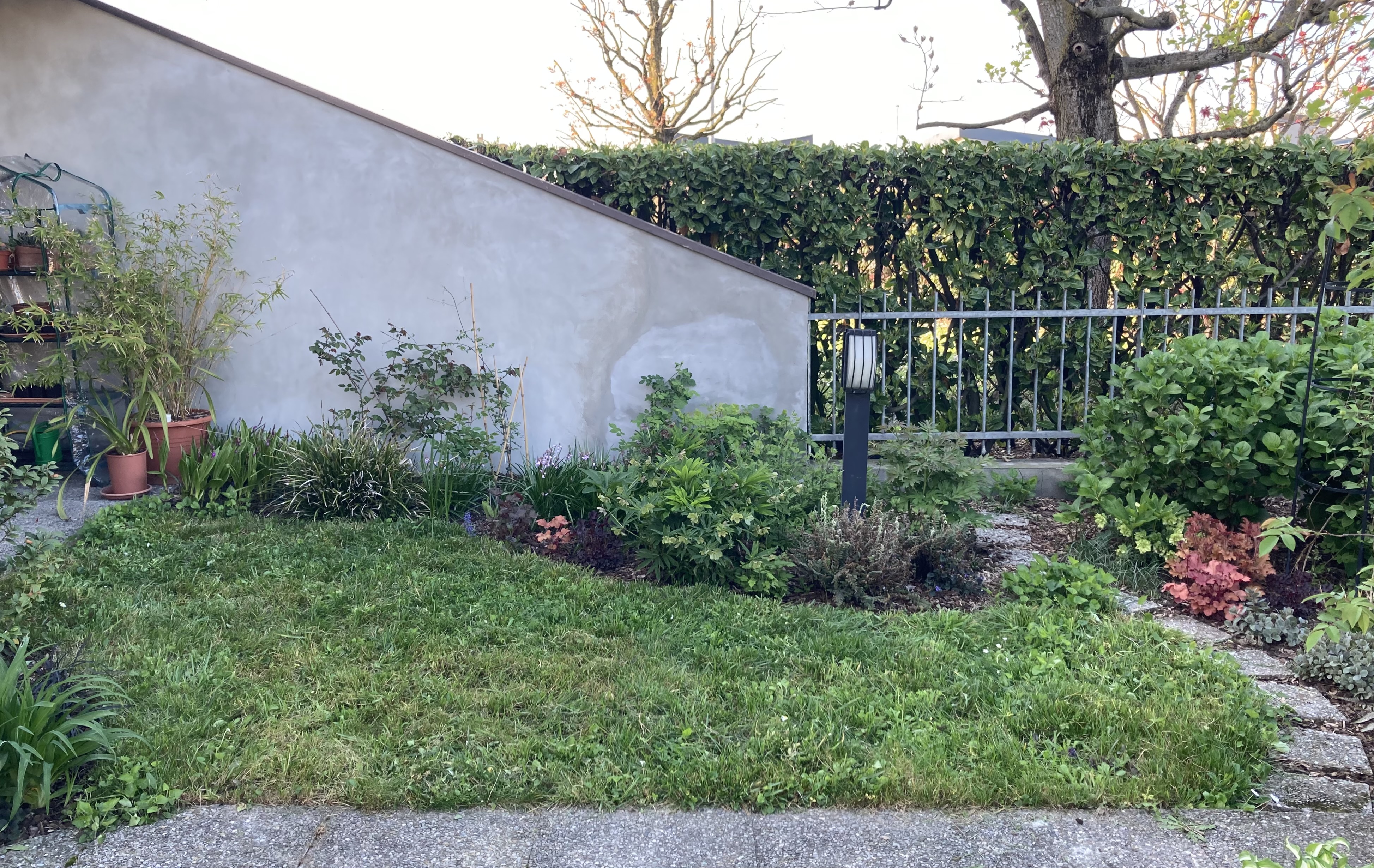 Per il pezzo “davanti” a casa invece non farò tutta questa fatica: via di tagliaerba a filo e ripasso con macchinetta, che lì è più quadrato e più facile