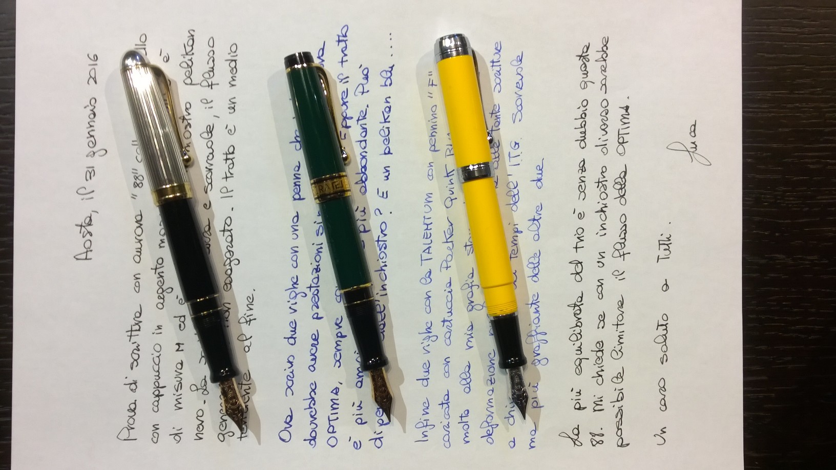 E fotaccia che la ritrae assieme ad una Optima verde (colore anni 90', ma per paragonare le forme) e ad una talentum gialla, che esiste anche nera, ma va a cartucce e a livello di prestigio percepito, secondo me, è un filino sotto.