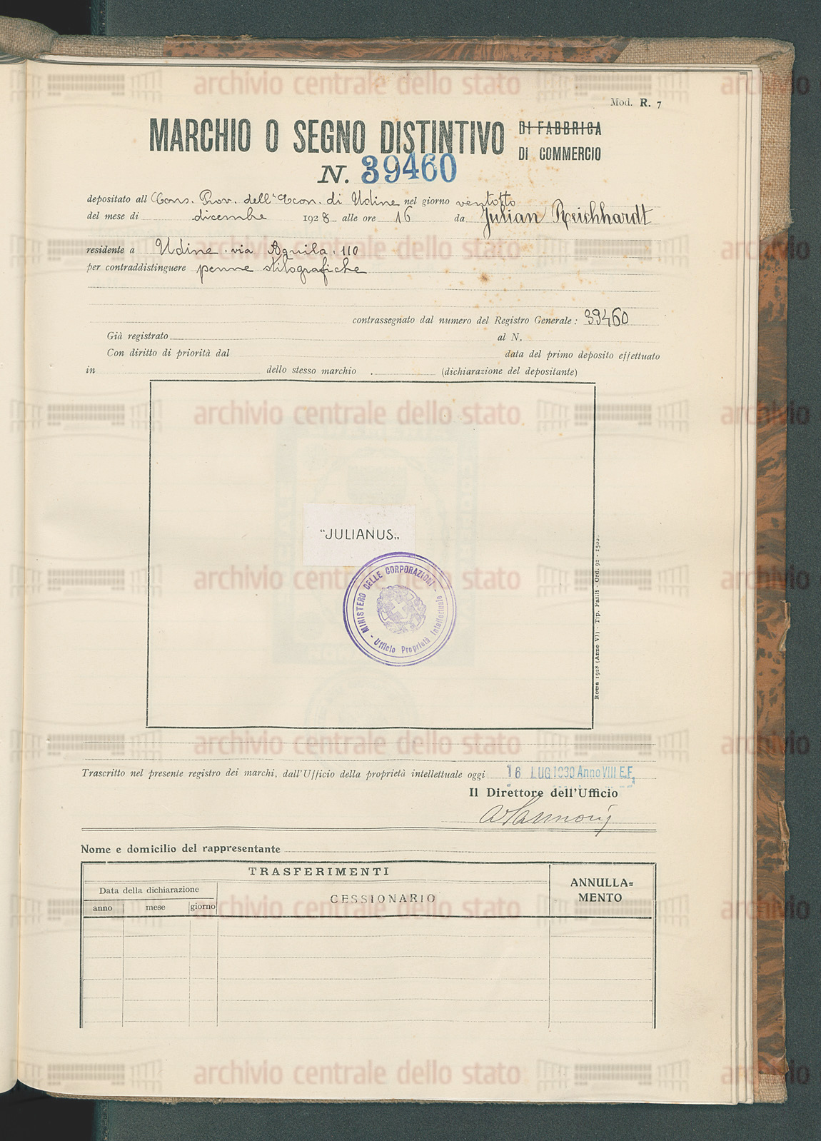 il Trade Mark della Julianus depositato da tale Julian Reichhardt (da cui JULIANUS) a Udine il 28 Dicembre 1928 e trascritto il 16 Luglio 1930. E’ inutile dire che quando con l’aiuto dei più grandi esperti si può raggiungere una conoscenza maggiore e più consapevole dell’oggetto delle proprie ricerche, e si è così in grado di riannodare qualche filo di una storia nella Storia, beh, è davvero una piccola/grande soddisfazione…