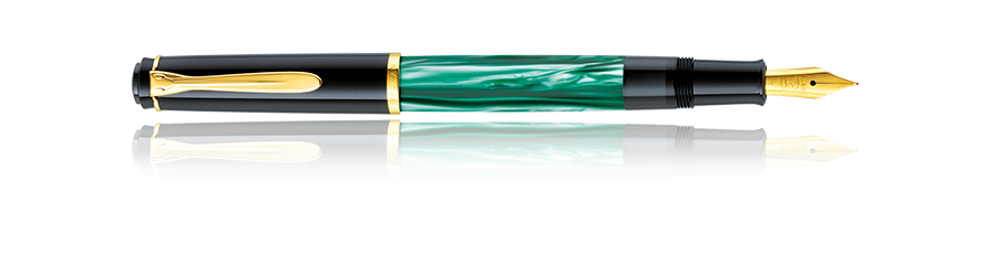 oppure prendi questa Pelikan M200 Marble Green: è relativamente piccola, scrive benissimo, ha lo stantuffo, ha un serbatoio bello capiente, è BELLA, è abbastanza robusta, ha il cappuccio a vite così difficilmente si può aprire da sola, e non ha un prezzo esagerato, dipende anche da chi la compri: