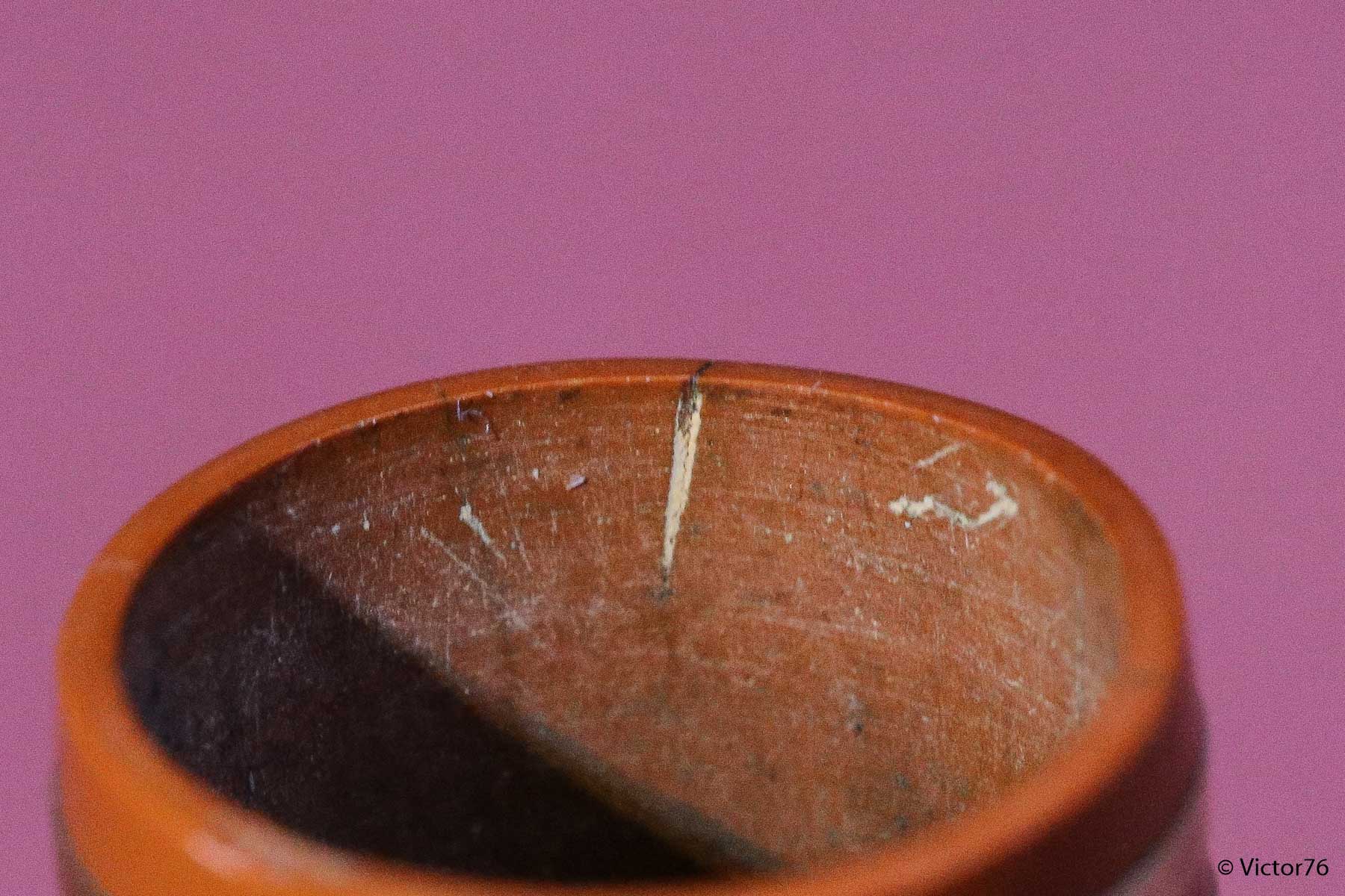 La screziatura grigio-azzurra è davvero bella! La torpedona ha il fondello rattoppato, ma almeno quello era descritto. Può darsi che il rattoppo sia stato fatto per via di un distacco causato da cristallizzazione...