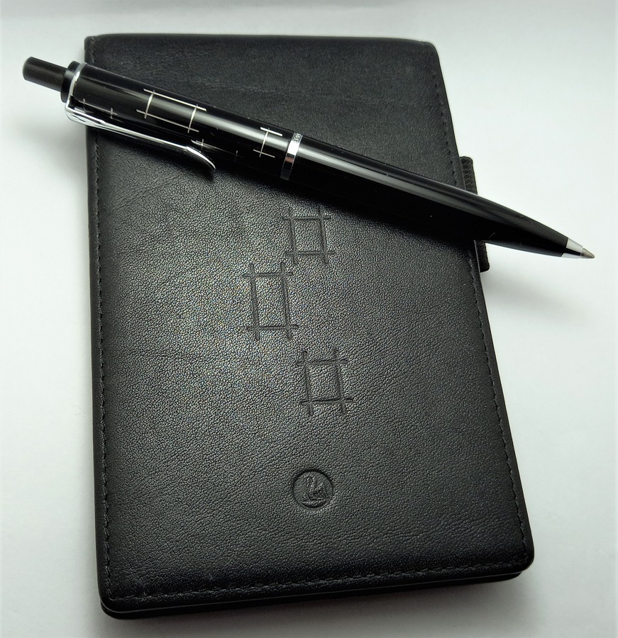 Possediamo solo le tre penne stilografiche M215 nere con i diversi disegni. Inoltre, abbiamo una Penna a Sfera e un blocco per scrivere.