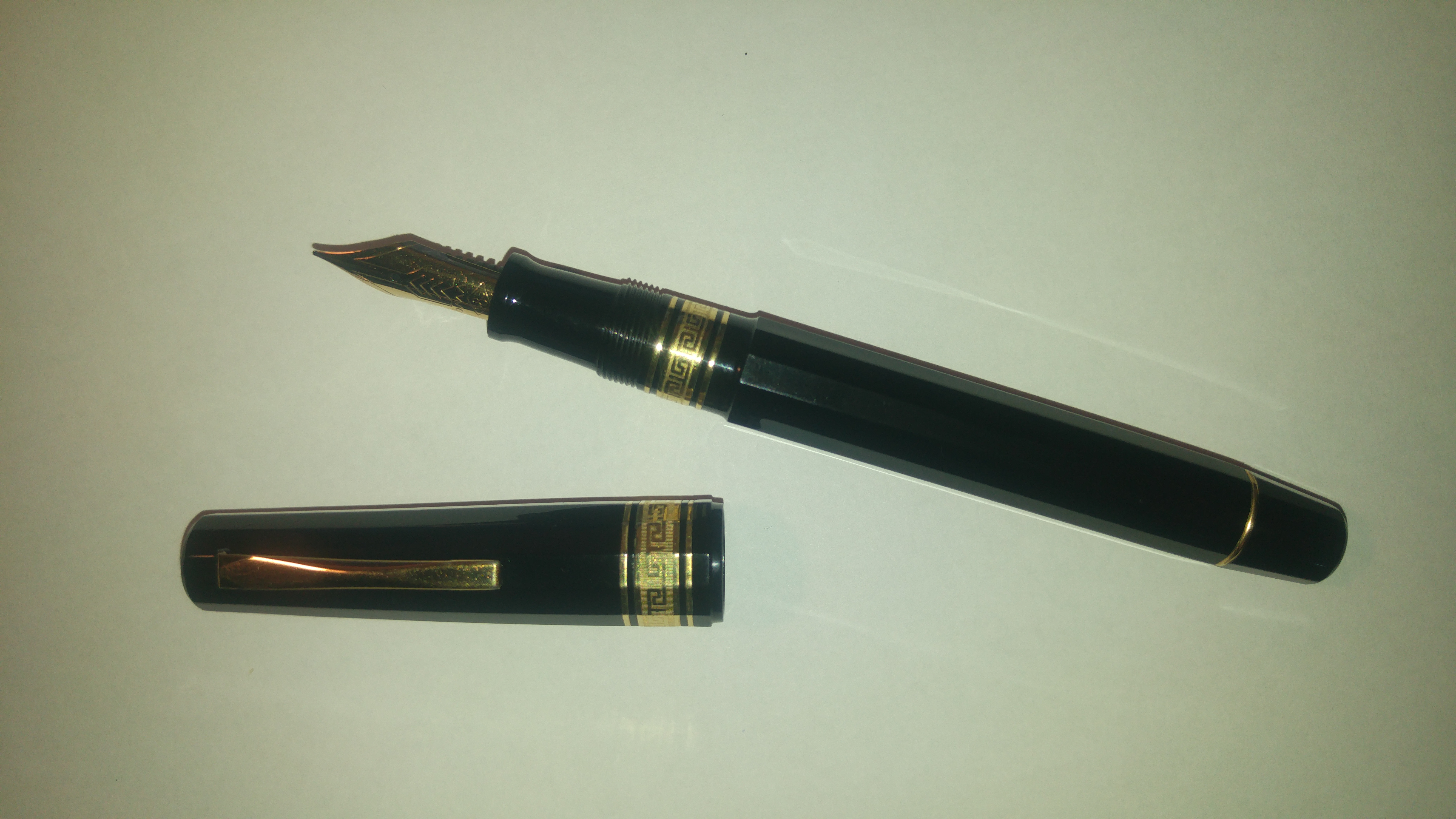 Qualche dubbio l'ho sempre avuto anche io, mi è stata venduta come Alma Mater, ma ho sempre creduto fosse una 557-F visto la veretta a forma di greca su cappuccio e sezione. La penna peró è lunga 14.3 cm, la 557-F non dovrebbe essere un po' più lunga?