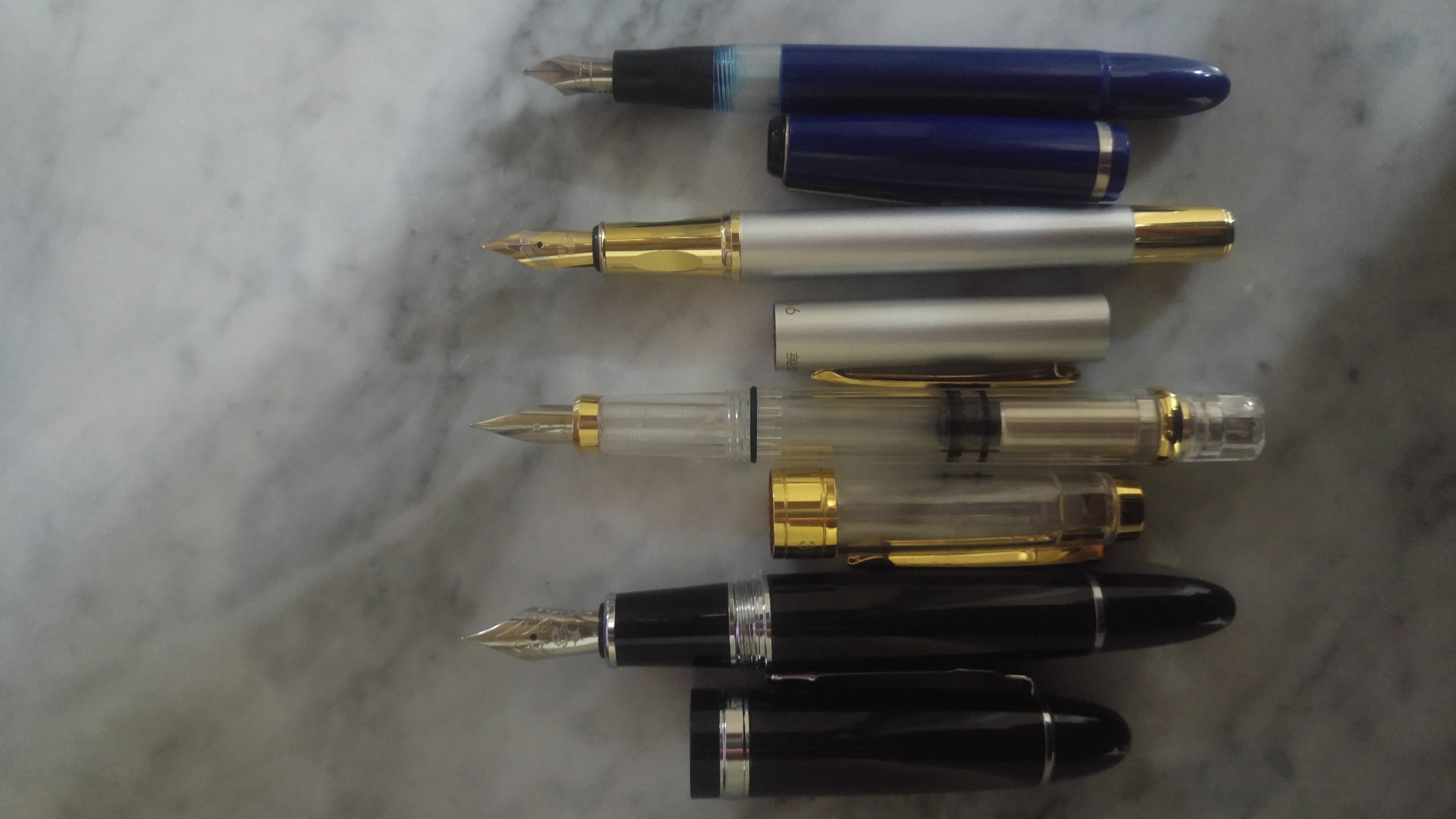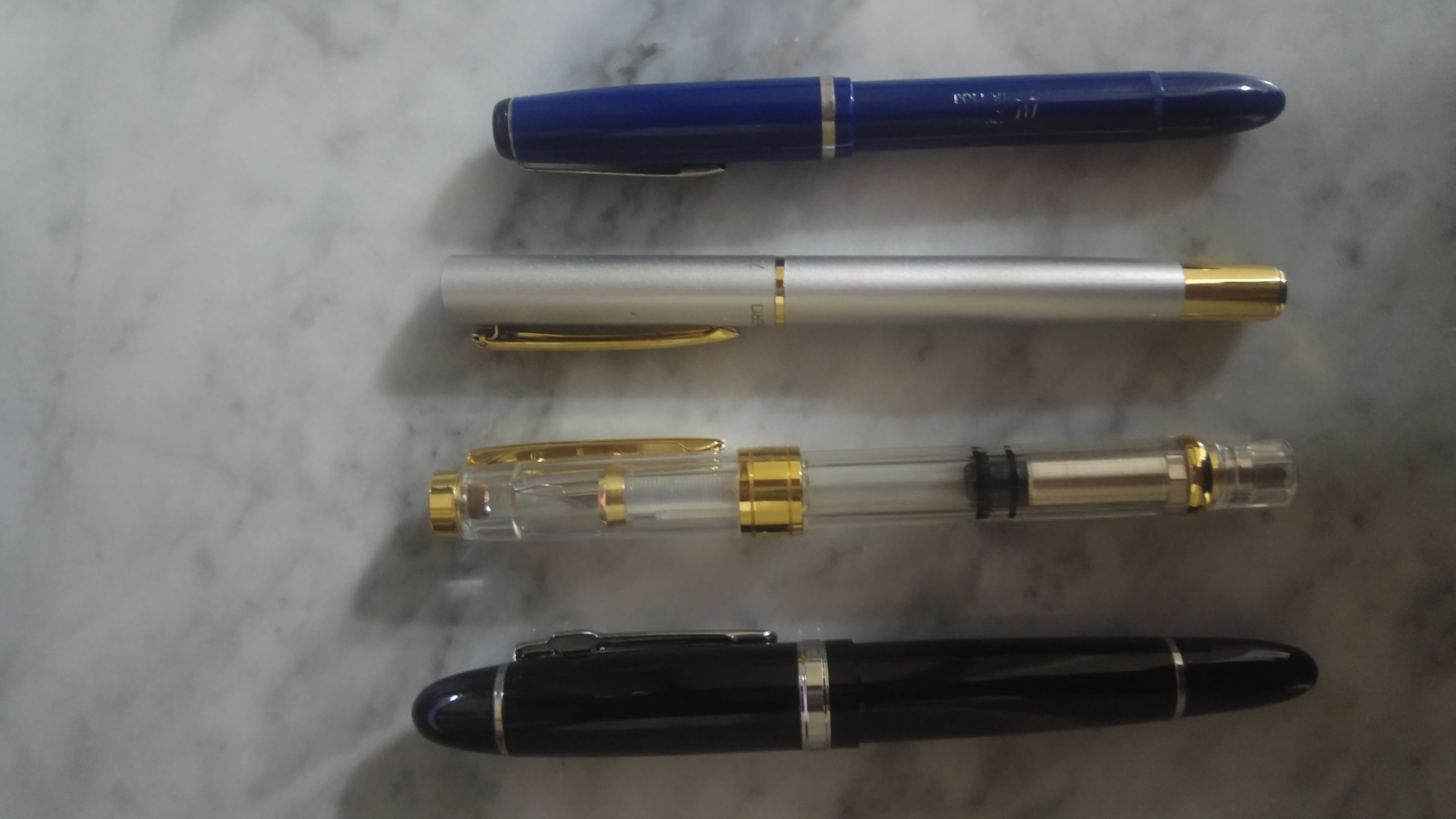 Felice di donare una dollar pen con pennino obliquo, una Jinhao 159 con pennino JoWo, una Hero ed una Jinhao 3008. :wave: