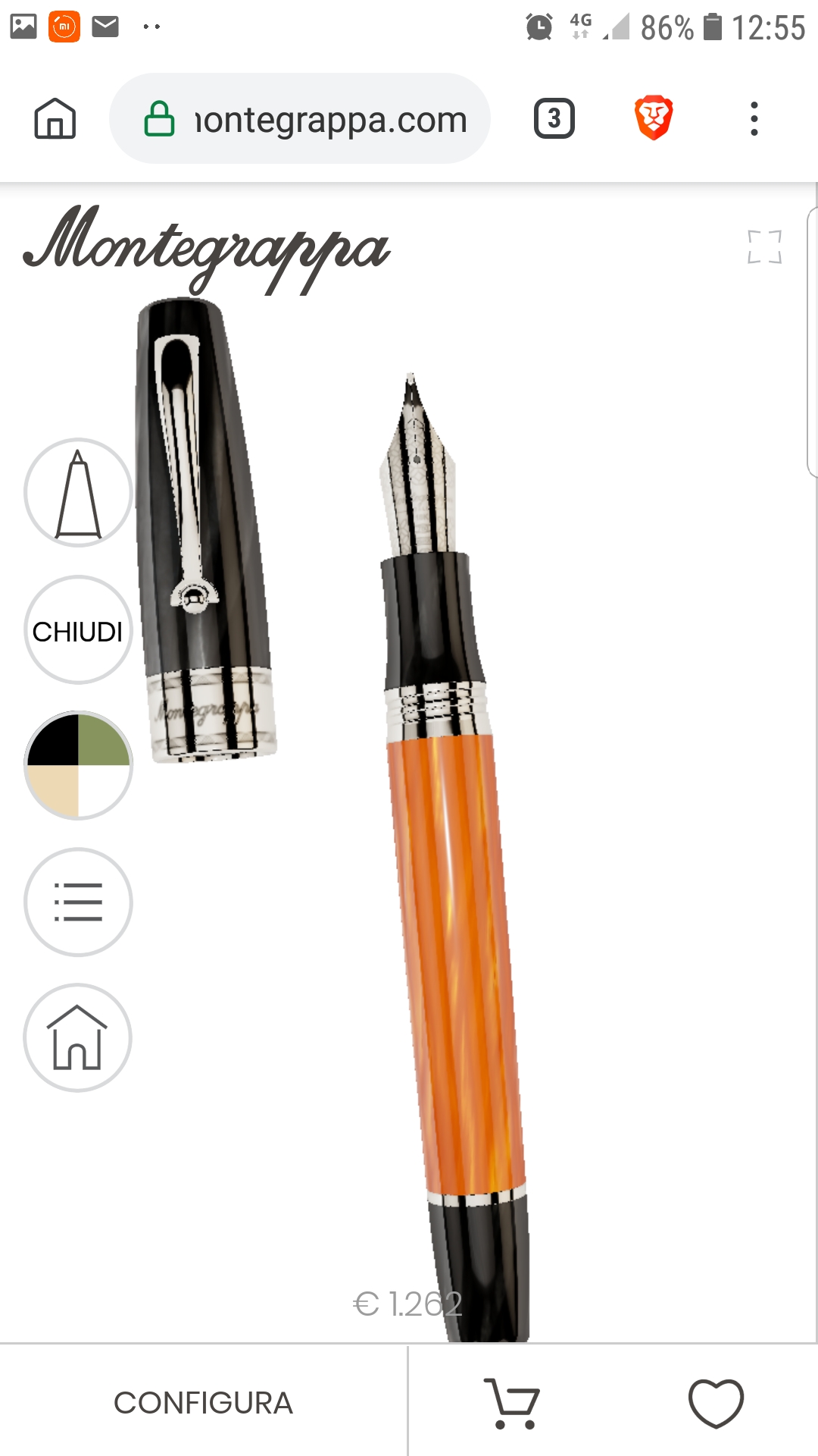 Ma è certo che in questo momento Montegrappa ha molte belle penne, in celluloide, in resina, in legno, in metallo, ed è certo che ha in magazzino alcune tra le celluloidi più belle tra quelle che si vedono sul mercato. Basta giocare un po' con il "Configuratore" per rendersene conto.