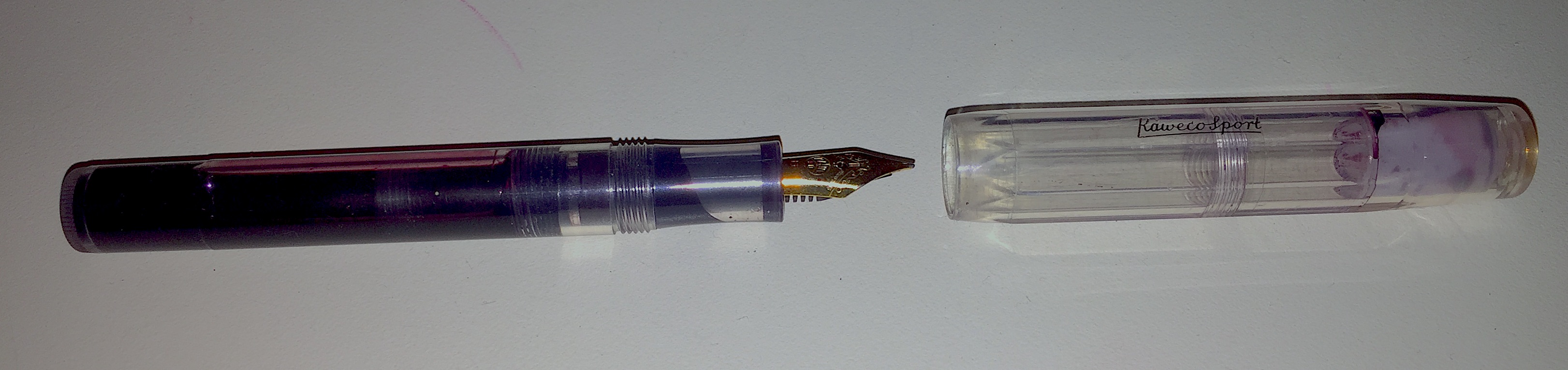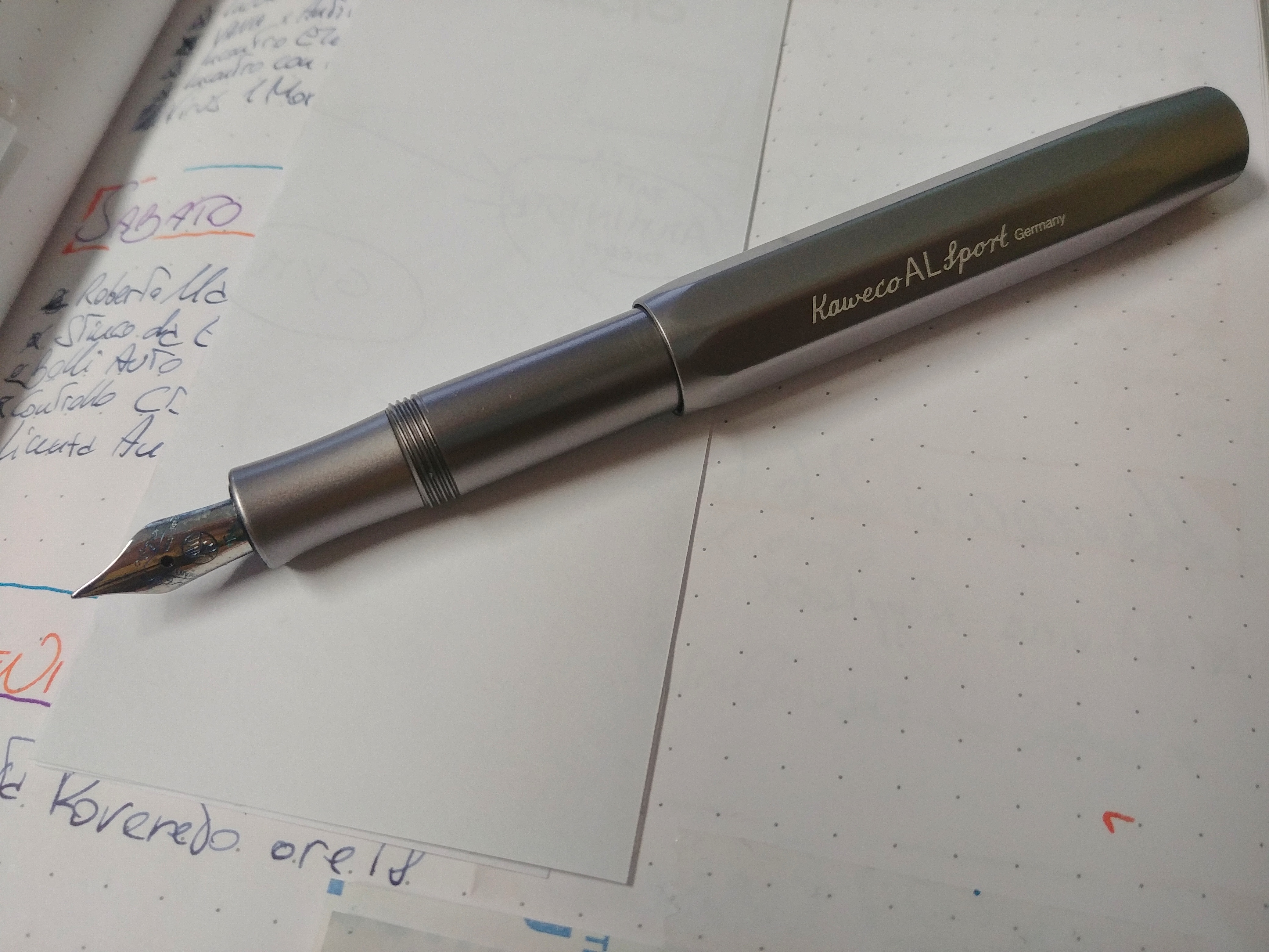 Per completezza, questione eyedropper su AL-Sport: mi è capitato due volte, lasciando (irresponsabilmente) la penna in tasca per una settimana senza mai usarla, di ritrovarla con la sezione leggermente allentata dal fusto: diciamo svitata di un quarto di giro, ma senza una presa salda.