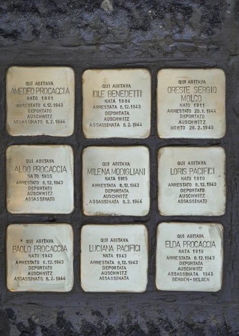 Anche Napoli in questi giorni ha apposto in piazza Bovio le sue pietre di inciampo, dedicate a due famiglie ebree (tra cui due bambini di pochi mesi) deportate ad Auschwitz e Bergen-Belsen.