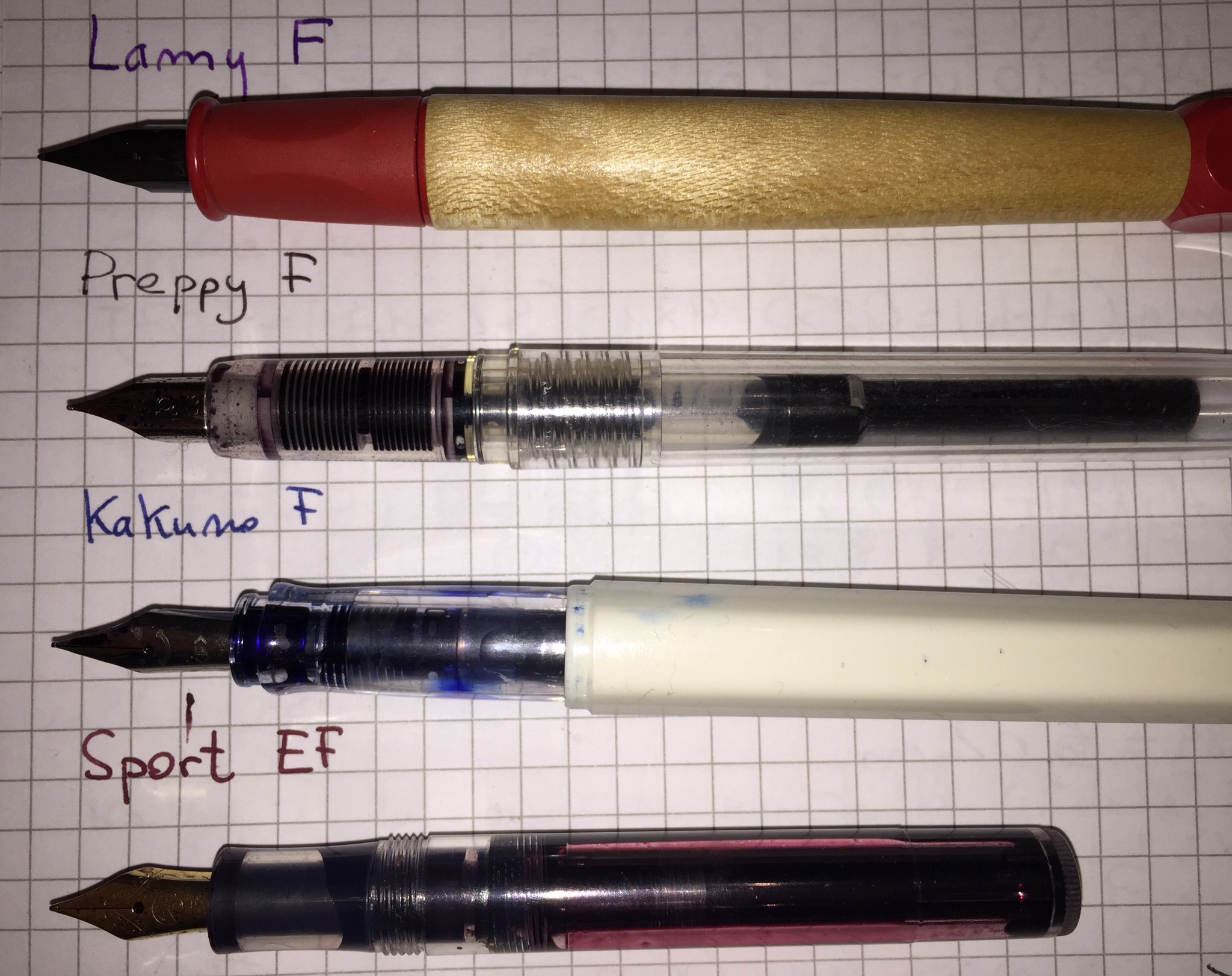 I pennini A ce li ho perché sono quelli montati sulle scolastiche ABC, le penne che attualmente uso perché hanno un grip fantastico e mi piace il touch del legno. Però se si vuole un tratto non troppo abbondante bisogna andare per forza con il fine.