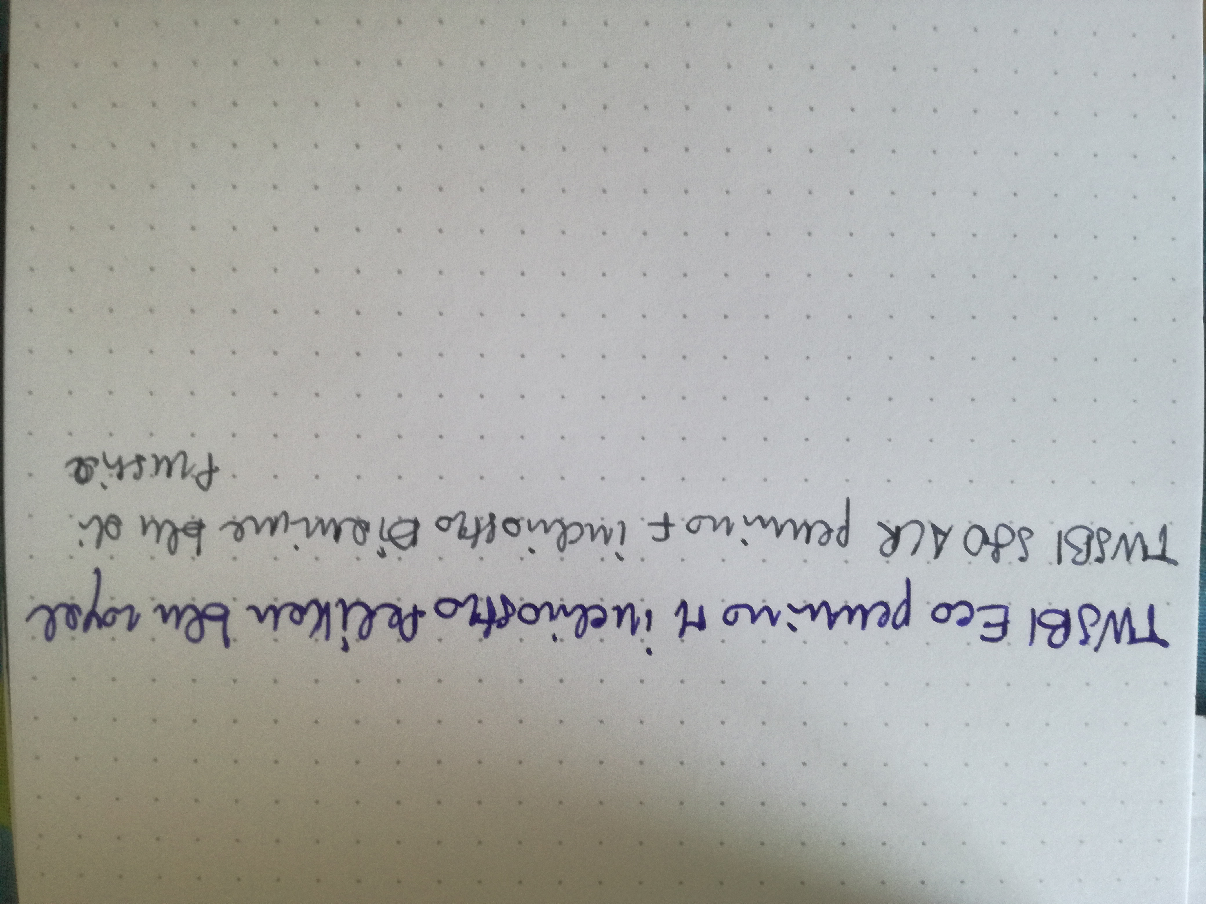 Ora però guardate questo. L’ultima riga l’ho scritta ora. Stesso inchiostro, stesso pennino, stessa carta. La riga sopra è stata scritta il giorno in cui ho pubblicato la recensione. Sembra un altro inchiostro. Boh