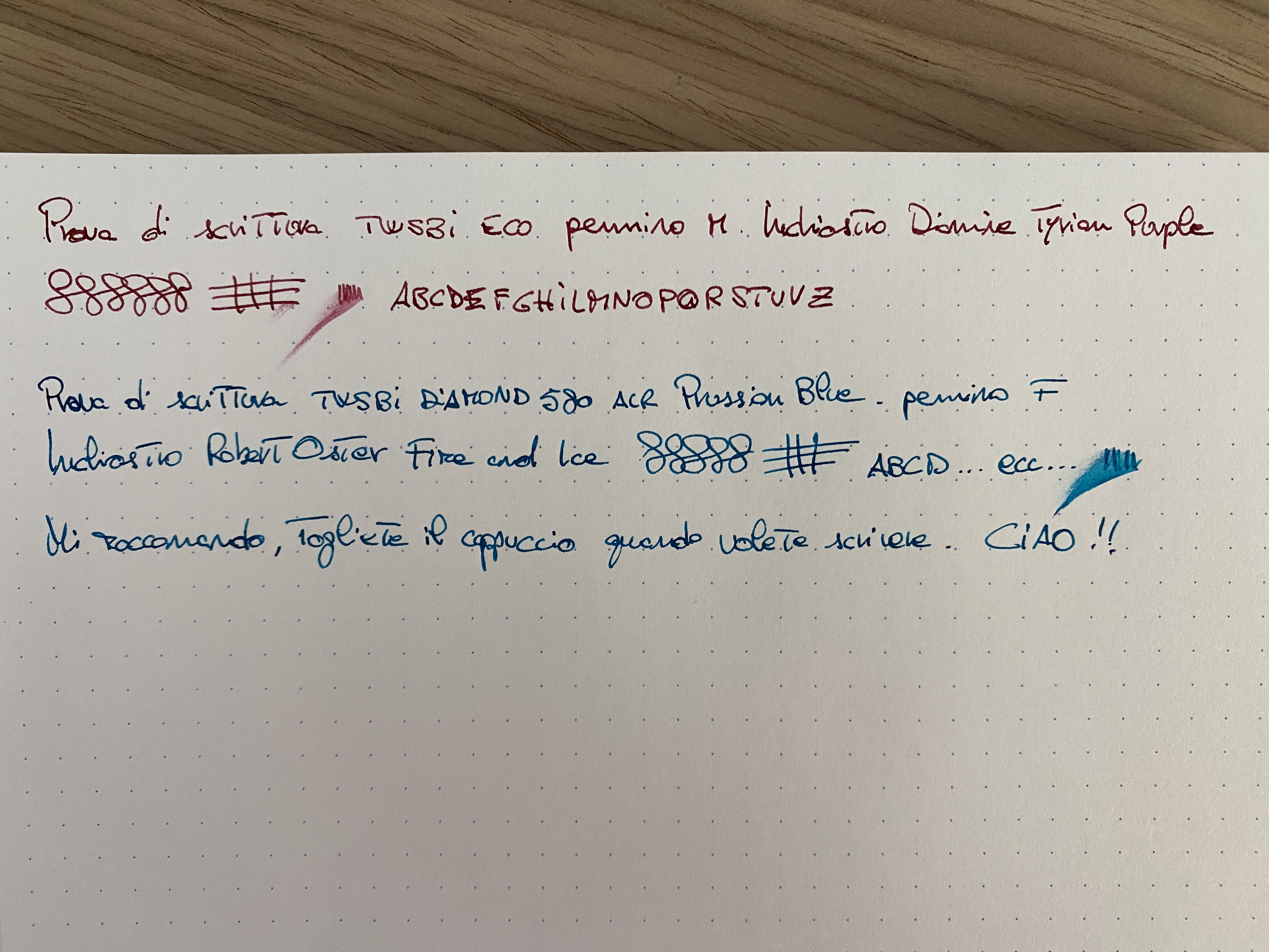 tomcar ha scritto: lunedì 27 luglio 2020, 10:46 Ora però guardate questo. L’ultima riga l’ho scritta ora. Stesso inchiostro, stesso pennino, stessa carta. La riga sopra è stata scritta il giorno in cui ho pubblicato la recensione. Sembra un altro inchiostro. Boh