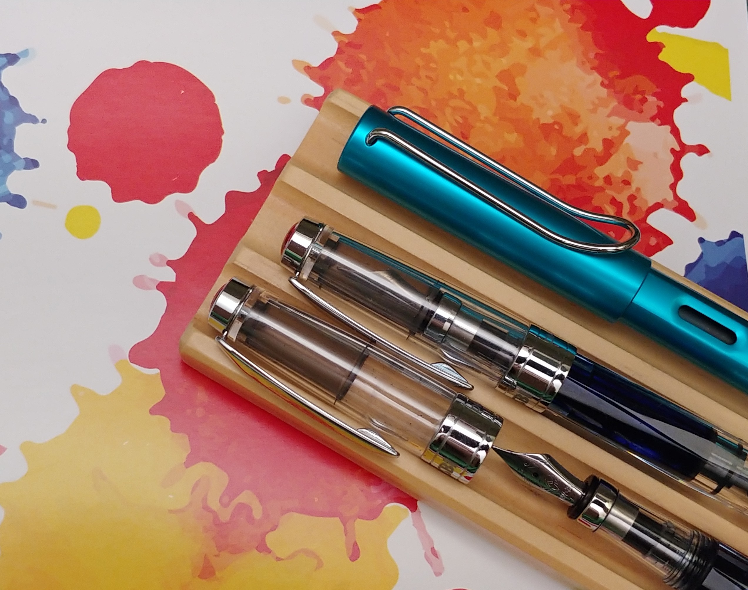 Due Twsbi Diamond 580 F, con Diamine Sargasso Sea e Noodler's BayState Blue, e Lamy Al-Star Turmaline 1.9 con inchiostro omonimo!