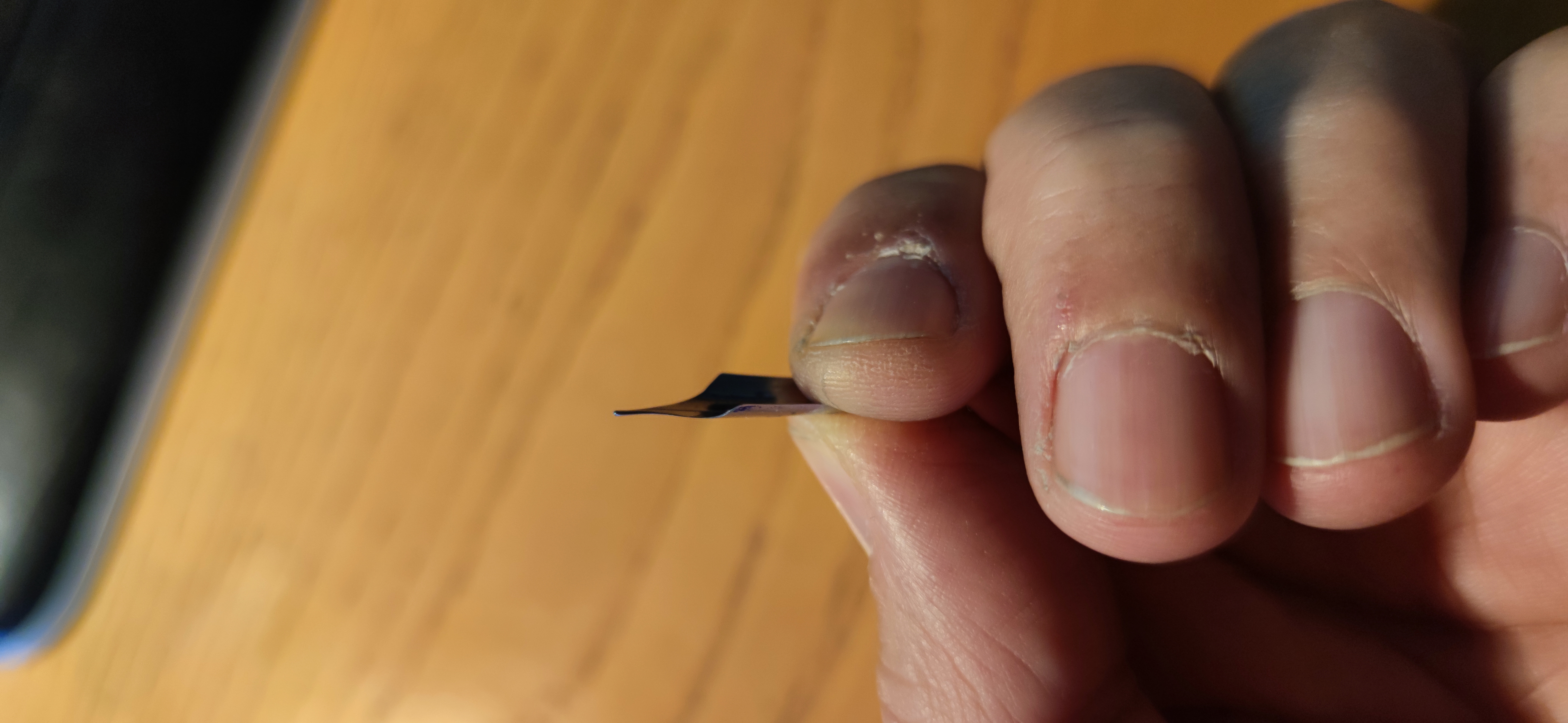 Non sembra rotto, ma è sicuramente deformato , la punta è piegata verso l’alto. Ha bisogno di una raddrizzata.