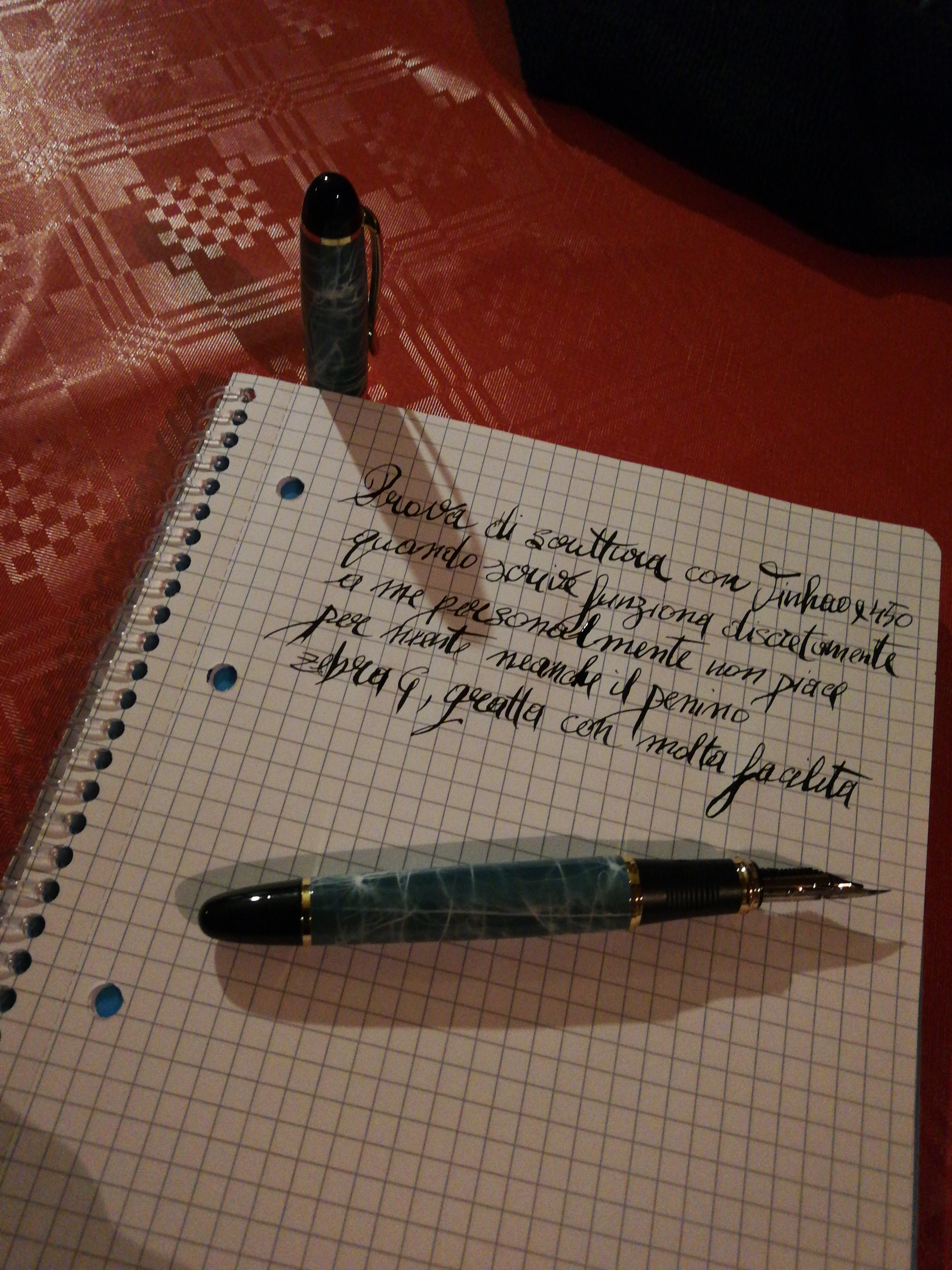Oggi finalmente ho provato sulla jinhao x450 il pennino zegra g.Conclusione, alla fine ho buttato sia il pennino che la Jinhao.Ero stato avvisato,quindi la.prossima volta lascio perdere S.Tommaso.