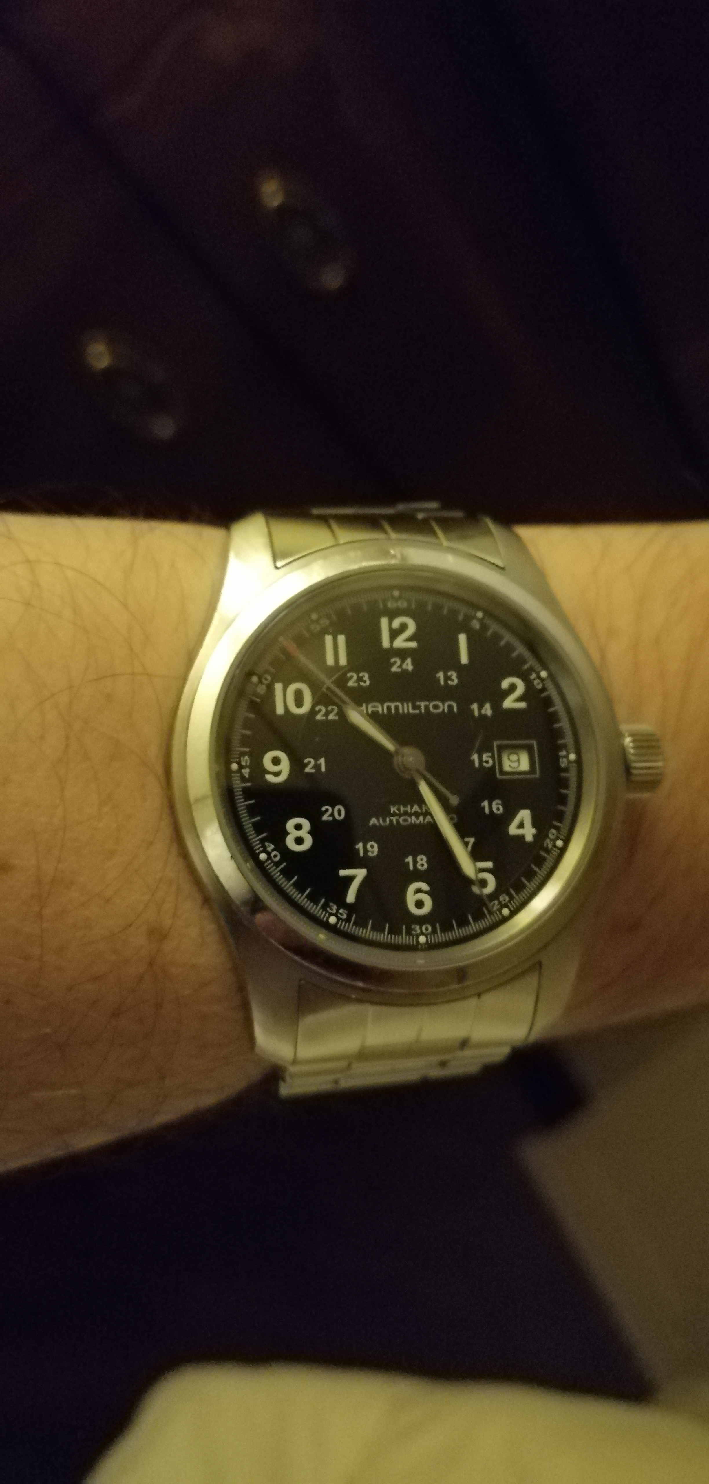 - Fra gli svizzeri concordo per hamilton o tissot, ho un khaki manuale con 80h di riserva di carica che, contrariamente alla maggior parte degli altri hamilton è semplice, grande il giusto (con vetro zaffiro) e cinturino nato (sostituito con cordura)