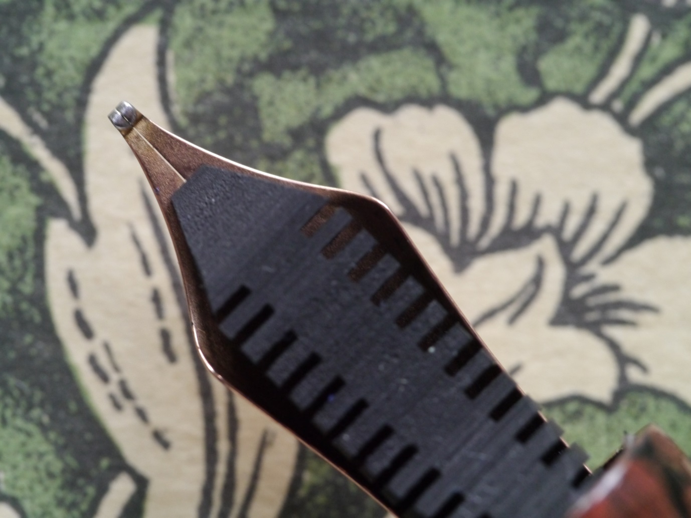 Usandolo si ha una sensazione strana, simile a scrivere con i pennini a intinzione senza esserne capaci. Senza usare peso piuma nella mano, i rebbi si divaricano veramente troppo e smette di scrivere - non sono le classiche rotaie, il pennino si pianta proprio.