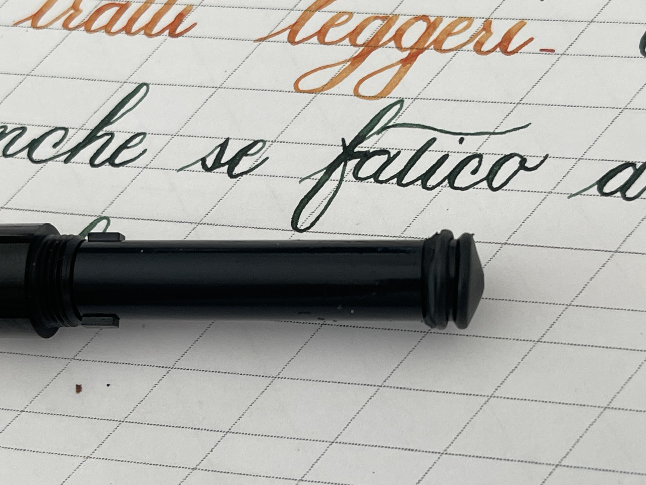 Il caricamento ora funziona divinamente. Scrive come ci si aspetterebbe da un pennino leggendario e ho speso un totale di 33,50€ compreso il costo delle 3 siringhe cannibalizzate. Sono felicissimo!