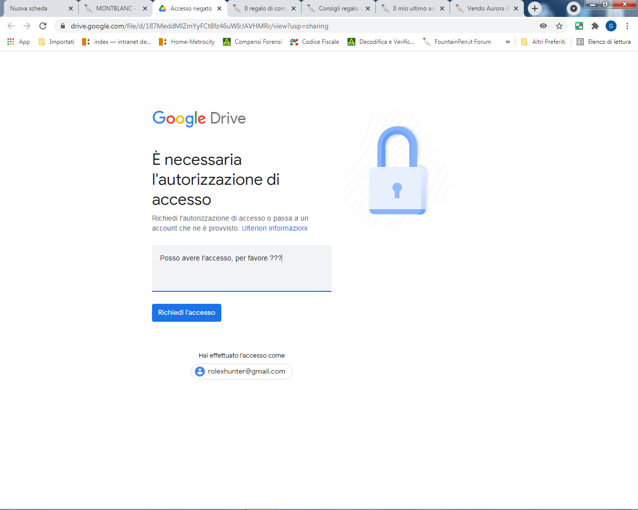 Grazie, dobbiamo solo capire quale è il sistema migliore per condividere un documento in PDF, esclusivamente (come richiesto dagli amministratori) per gli appartenenti al Forum, visto che il Forum è comunque visibile all'esterno. Io prima di iscrivermi navigavo tranquillamente nelle varie pagine più interessanti, senza poter intervenire ma leggendo comunque tutto. Inoltre mettendolo su Gmail Drive (senza richiesta di condivisione), si metterebbe comunque a disposizione di tutti del materiale senza possibilità di controllo. Al contrario, mettendo l'obbligo di richiesta di condivisione ho come l'impressione che solo chi ha una mail gmail ne avrebbe la facoltà. In altri situazioni metto a disposizione una mail a cui chiedere l'allegato in PDF, ma non vorrei avere poi un obbligo morale di rispondere a decine di richieste al giorno. Adesso mi consulterò con Paolo Tribolati, per capire quale scelta sia la migliore.