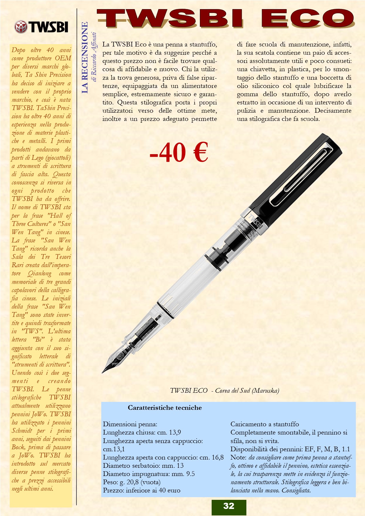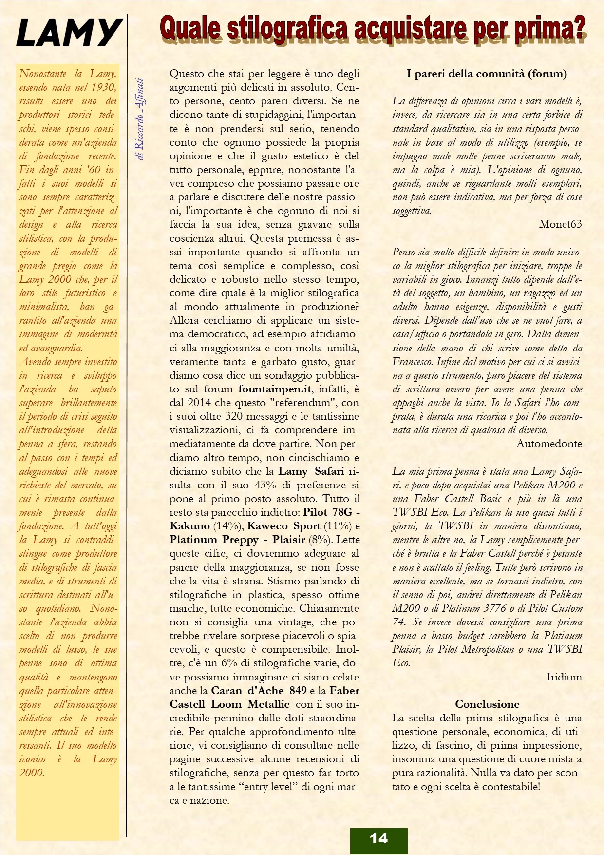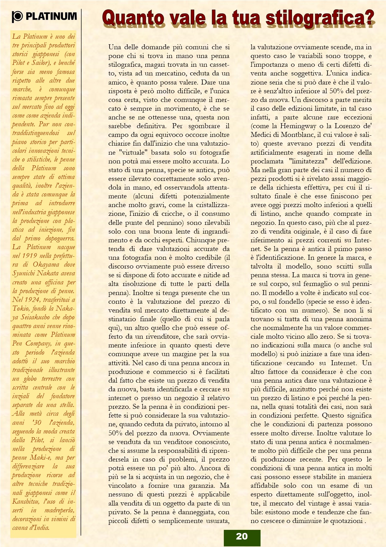 Credo che il lavoro fatto su FountainPen.it, sia stato veramente eccezionale. In particolare tutti quelli che hanno contribuito alle pagine wiki e chi ha creato e gestisce quelle pagine: Daniela (utente forum Irishtales), Giovanni Paolo (utente forum G P M P), senza contare Simone Piccardi, Ottorino, Sanpei, ecc. (nessuno escluso).