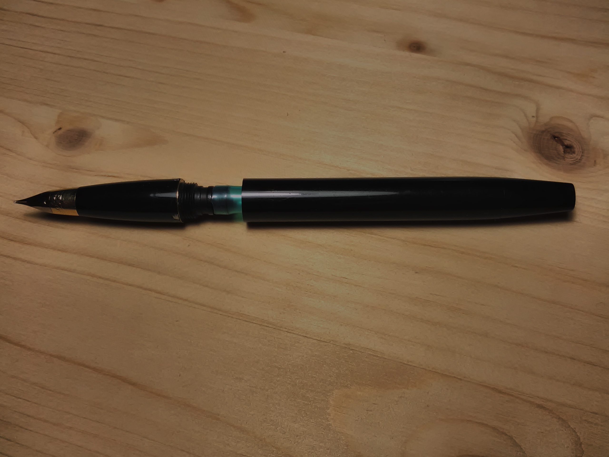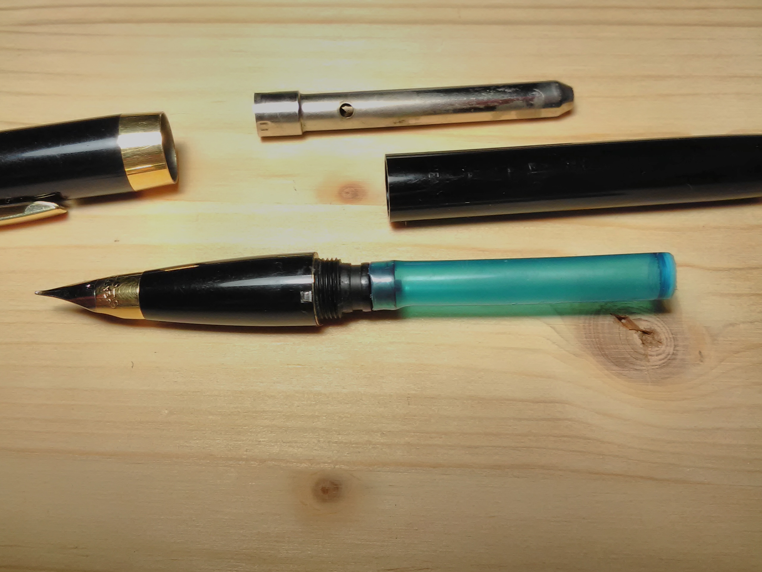 Non avendo a disposizione i sacchetti ho dato una nuova opportunità a questa Sheaffer in questo modo. Prova e riprova ho risolto con una cartuccia della Sailor, è l'unica che permette la chiusura della penna. Ho tagliato un pezzettino dalla parte dell'innesto. La stacco e la carico con una siringa, quando cederà ho pronte altre.