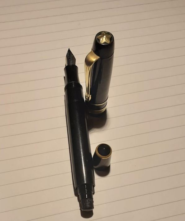 con riferimento alla stilografica bulgara di cui si parla, vorrei sottoporre alla vostra attenzione questa stilo che comperai a Sofia e che mi fu presentata come "sovietica". E' molto simile a quella delle vostre foto ma non ha alcuna scritta. Sul fermaglio appaiono solo tre righette verticali e sul cappuccio una stella in ottone che richiama la stella delle Mont Blanc. Sarei grato se qualcuno avesse qualche commento da fare, dal momento che sono a digiuno in materia. Grazie