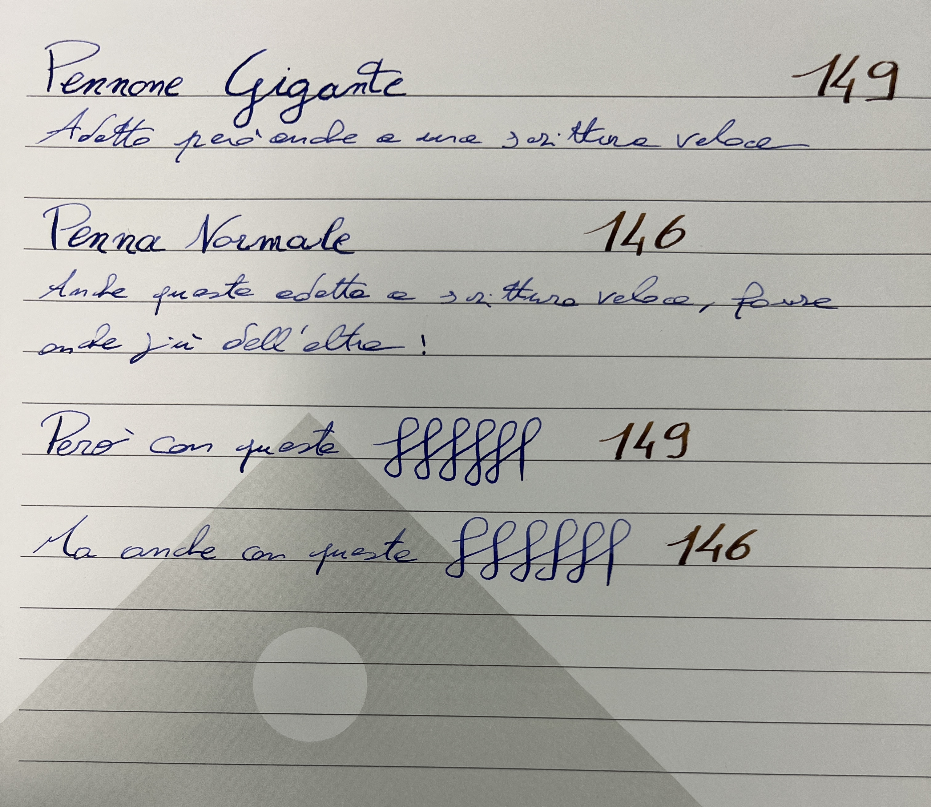 Io continuo a preferire la 146 per la scrittura. La 149 invece mi sta più comoda da tenere.