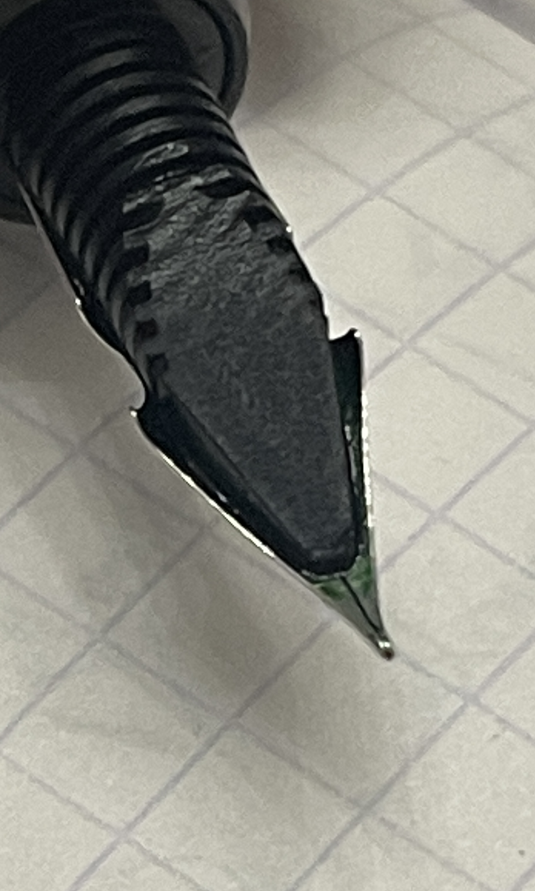 Mi è capitato di esagerare con la divaricazione dei rebbi in scrittura e di trovare la punta leggermente aperta. Ho corretto spingendo le due ali lateralmente fino a chiudere i rebbi. Manovra delicata: spingendo troppo, il pennino comincia a gocciolareA2CAC476-1483-4418-913D-D12787809920.jpeg
