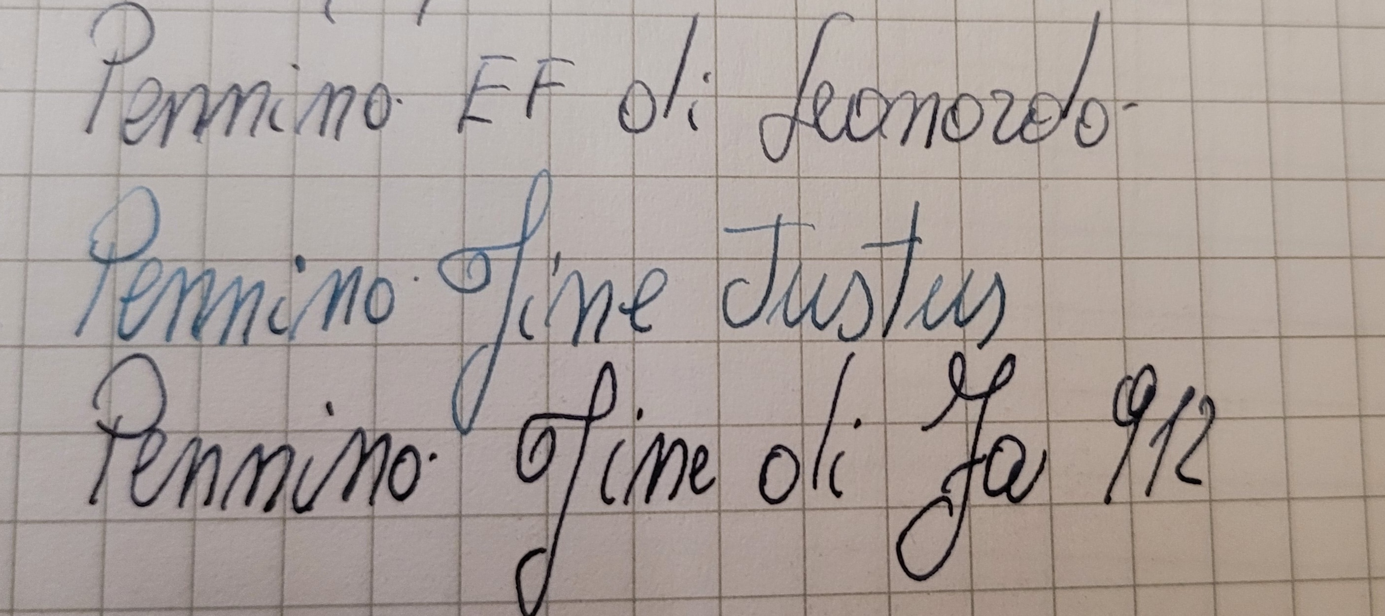 La terza con un confronto tra pennini (leonardo EF, Justus, Pilot 912 FA)