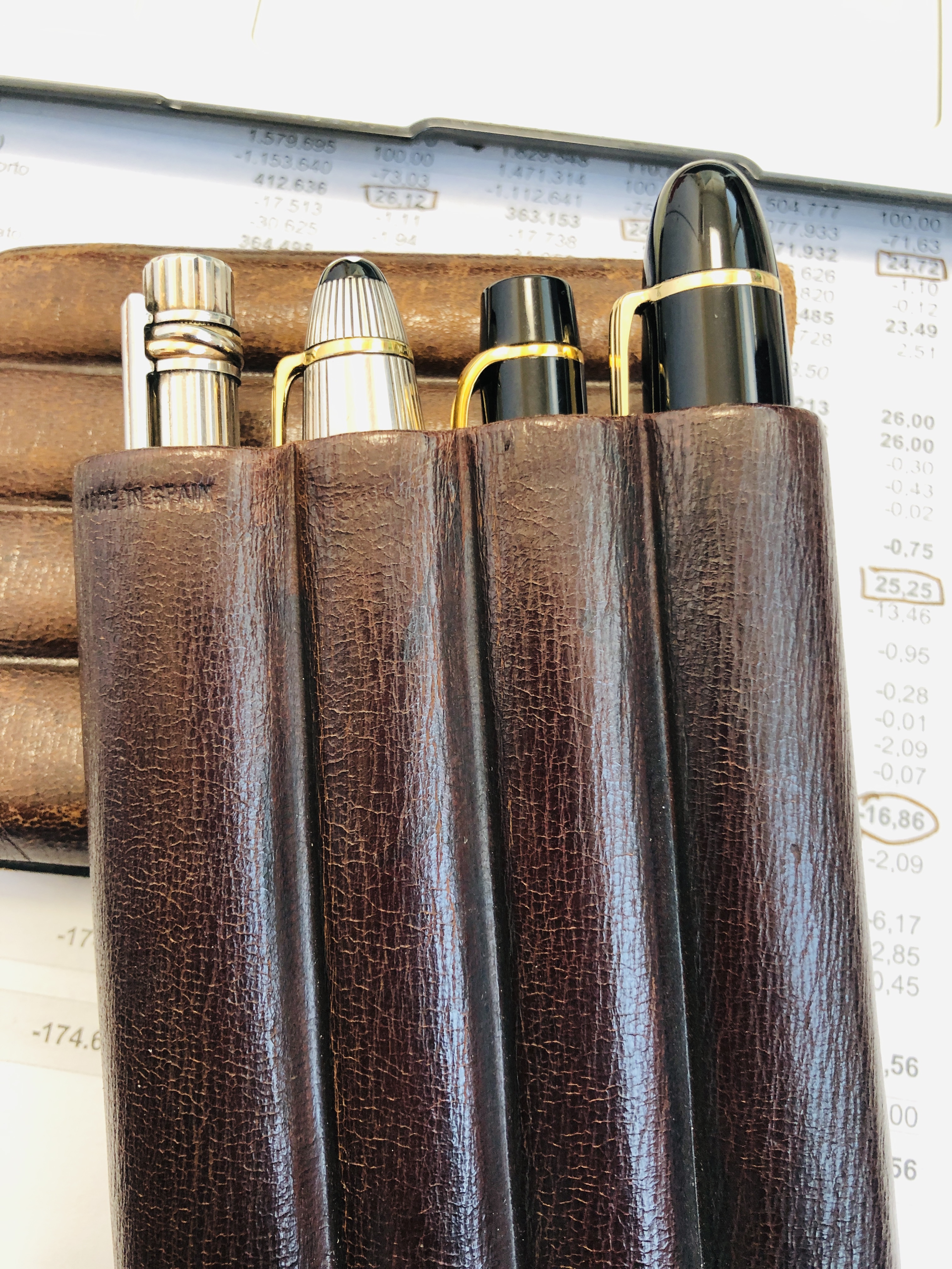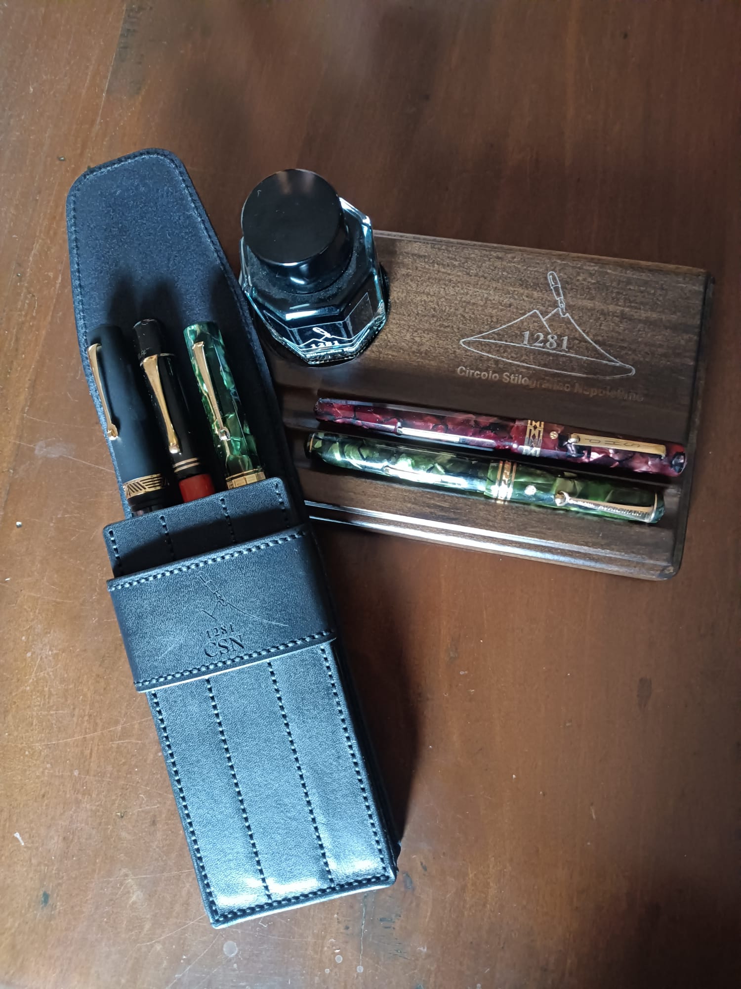 Noi del Circolo Stilografico Napoletano ce li siamo fatti fare, io lo porto sempre in giro con me. Disegnato per portare in sicurezza tre penne di taglia grande (3 x MB 149), di cuoio e realizzato completamente a mano.