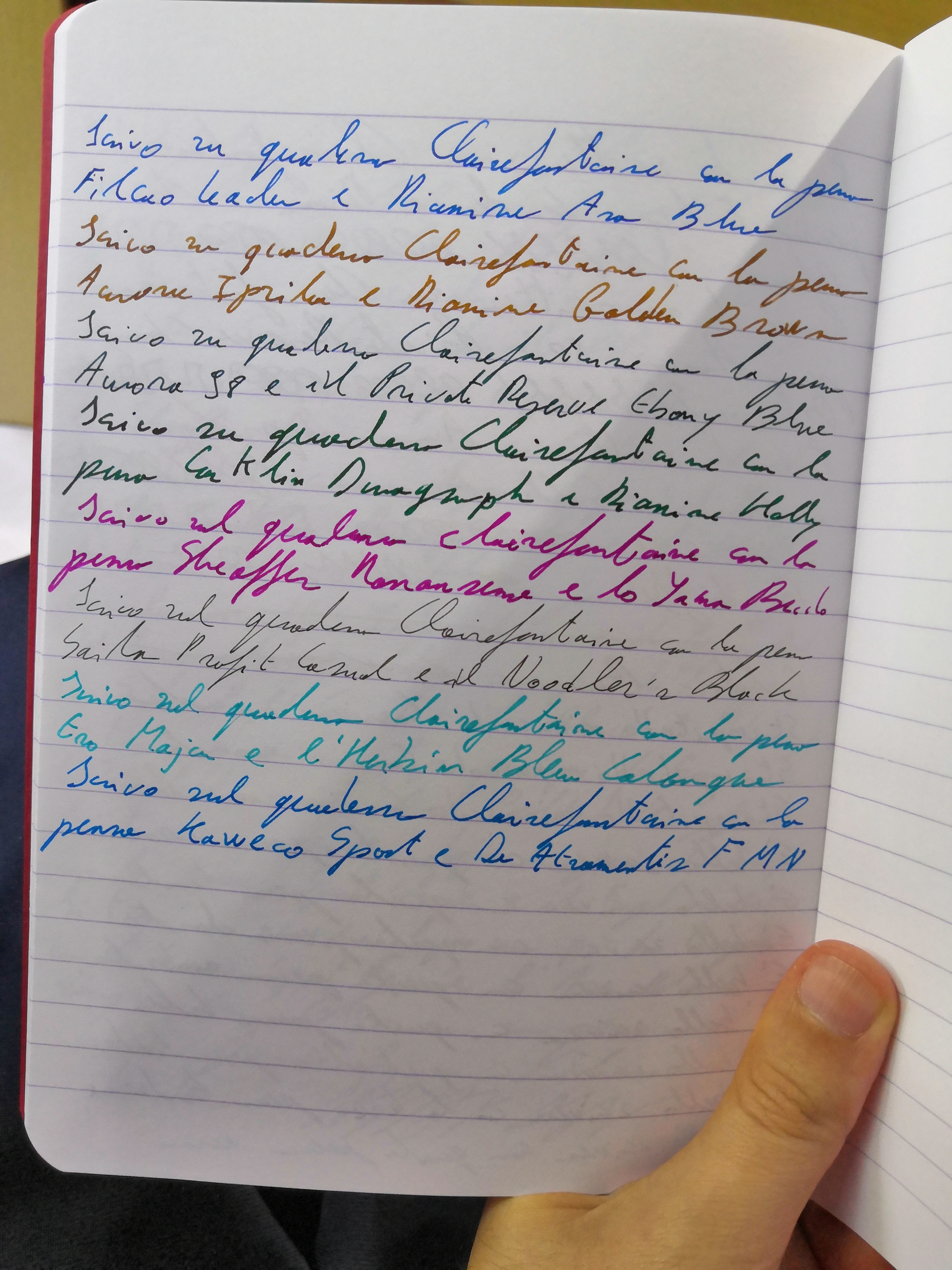 ciao. purtroppo non indichi che tipo di penna userai (flusso e dimensione pennino). assumo sia un F di flusso mediomastrogigino ha scritto: ↑mercoledì 24 agosto 2022, 14:57 Guardando le recensioni sul mare magno di internet, per dare un idea, mi sono piaciuti i seguenti: