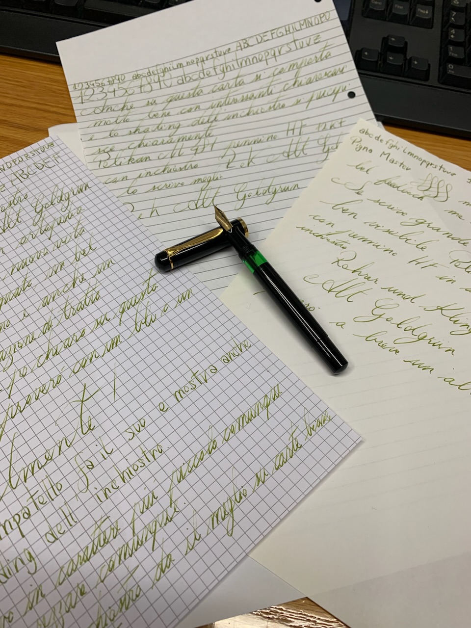 Ho completato 3 cariche di inchiostro (R&K nero, flusso abbondante), per cercare di "rodare" um po' la penna e l'alimentatore dopo i vari lavaggi preventivi.
