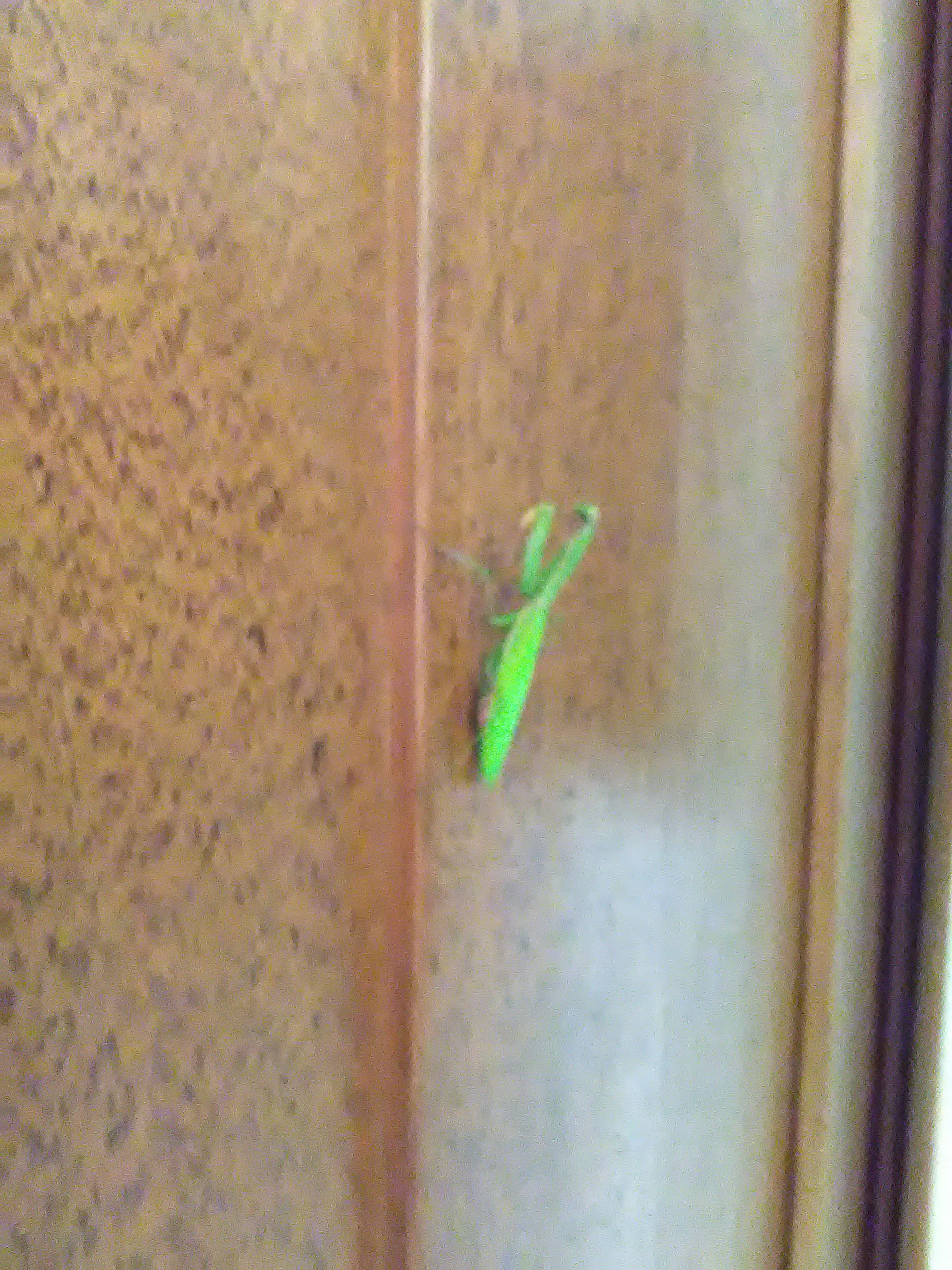Uh giusto lei, la mantide! Anche oggi ne ho salvata una.. Al lavoro ogni tanto se ne trova una nel bel mezzo della galleria dove c’è passaggio di gente; a me fanno impressione ma anche pena se sono in pericolo, così salgo in ufficio e prendo la scopa (= setole morbide e soprattutto a debita distanza da me