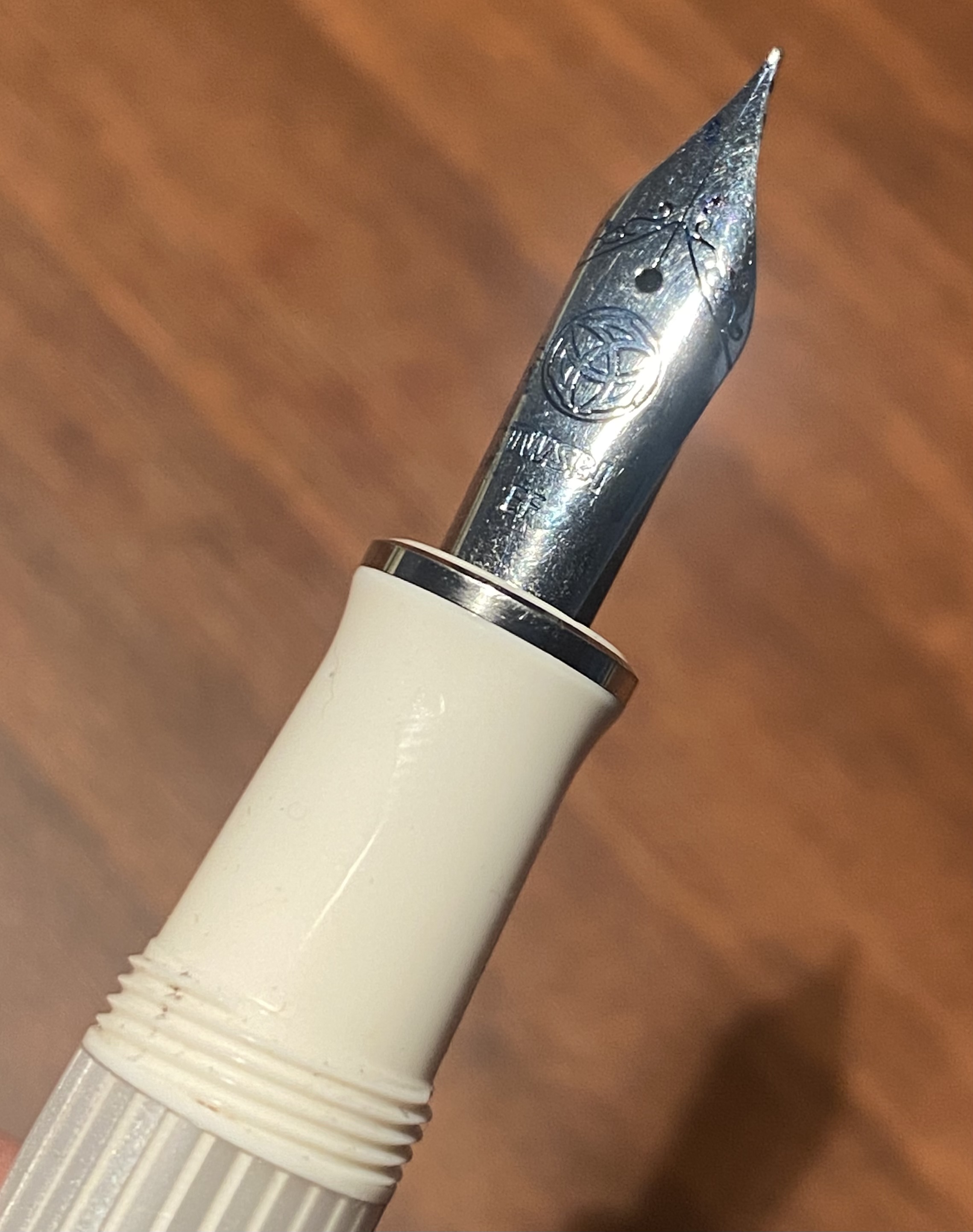 Ho tentato con un pennino flex di una Verbana (credo degli anni 50) ma in questo caso è troppo lungo e stretto, sporge troppo dall'alimentatore e non sta ben fermo.