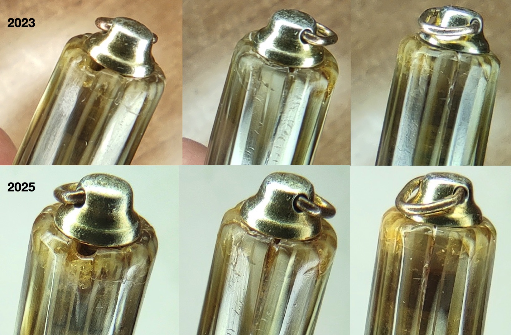 Per quanto riguarda la tenuta del collante, al momento è ancora ottima, è possibile maneggiare il cappuccio senza particolari accortezze , come per qualunque altro oggetto. Le grandi crepe longitudinali non sono avanzate e non si sono allargate.