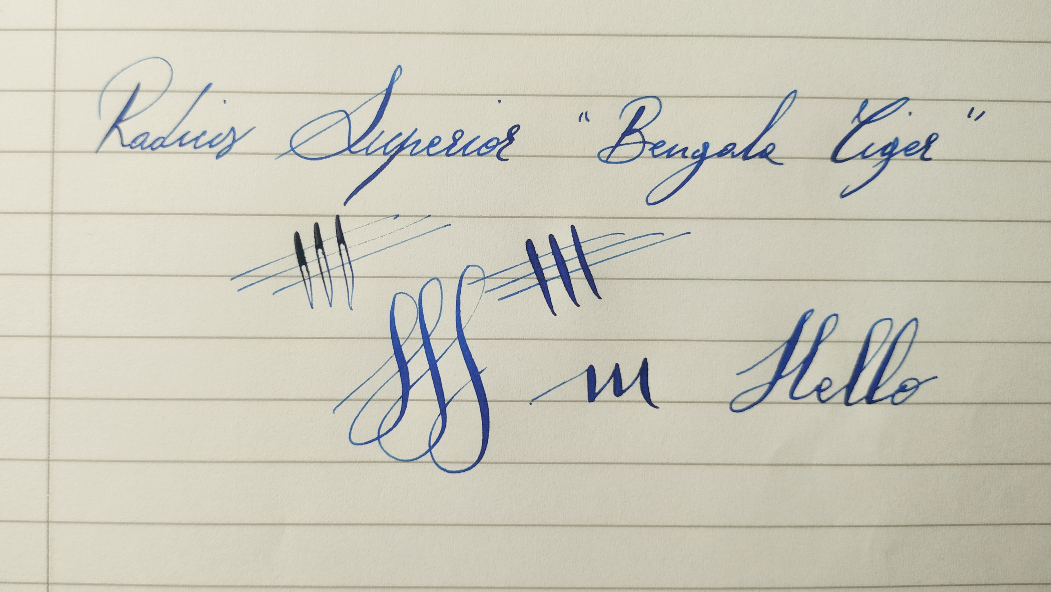 Oltre alla particolare celluloide, il “pezzo forte” di questa penna è il pennino, che come da tradizione Radius” è un fine dotato di ottima flessibilità, ma soprattutto molto reattivo nella scrittura.