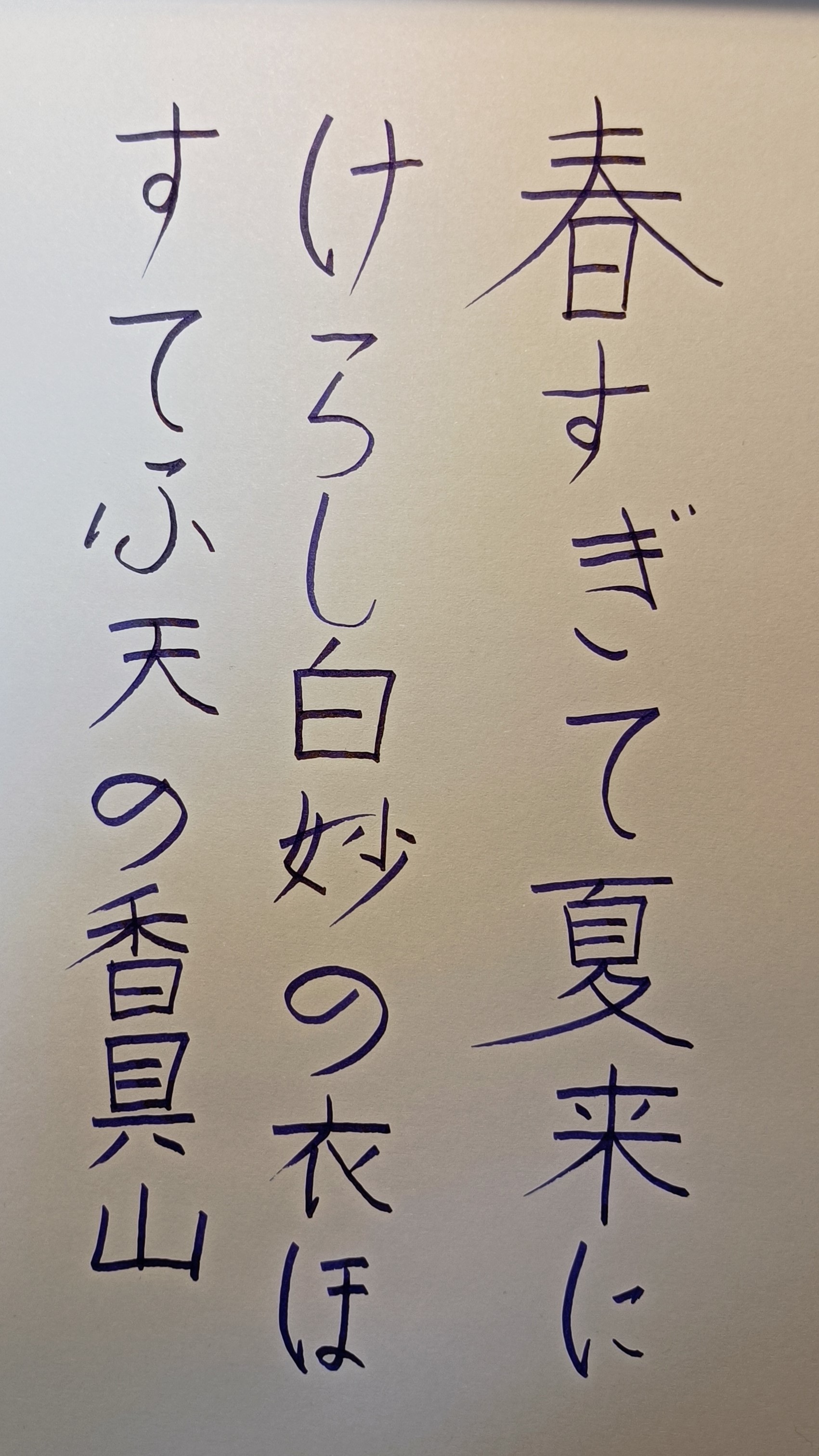 Grazie.Enbi ha scritto: ↑martedì 21 novembre 2023, 12:01Io lo trovo un pennino molto divertente e utile per fare calligrafia "orientale". Fude in giapponese vuol dire proprio "pennello" e il pennino dunque è fatto per imitare il comportamento di un pennello da calligrafia. Se può aiutare inserisco una foto dove ho trascritto un waka (poesia classica giapponese) usando il pennino fude a intinzione della Hocoro (non ho idea dell'angolo in cui è piegata la punta). Non ho alcuna pretesa calligrafica, però se la nipote studia cinese dovrebbe dare un'idea (preciso che la calligrafia giapponese deriva da quella cinese e dunque si usa sempre il pennello).
