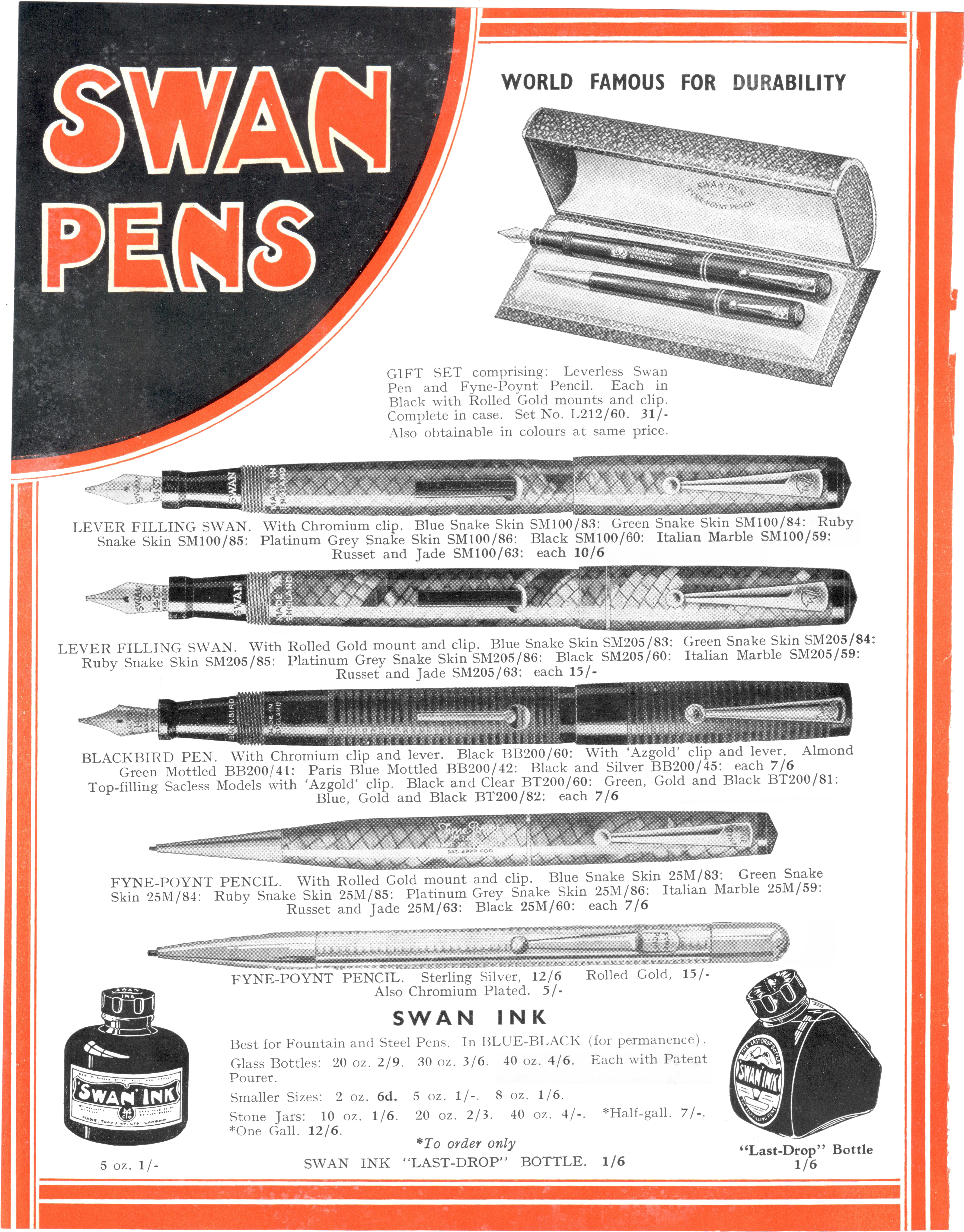 Come suggerito già da Marco, le matite meccaniche marchiate Fyne-Poynt accompagnavano sia le Swan che le Blackbird all'epoca (1939). Dal Wiki: