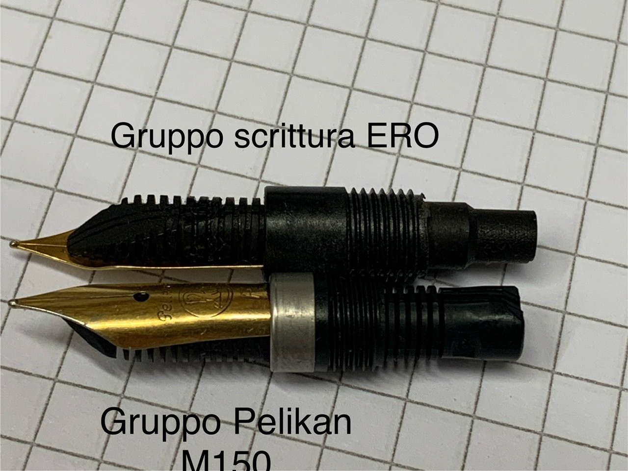In pratica si può montare direttamente il gruppo scrittura Pelikan M150 old Style dentro alla sezione della Ero, l'unica cosa è che il pennino sporge di meno per via del fine corsa diverso.