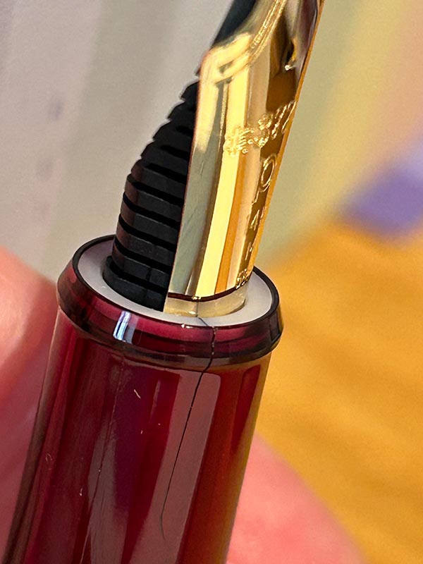 Io eviterei di smontare il gruppo pennino di una 3776 (ma anche di molte altre giapponesi): esso è inserito in maniera molto ferma e non è così immediato riuscire a sfilarlo. Inoltre la plastica della sezione, proprio in prossimità dell'innesto pennino/alimentatore, tende a fessurarsi con una certa facilità alla minima torsione, problema che nel momento in cui dovesse verificarsi escluderebbe qualsiasi possibilità di rivolgersi gratuitamente all'assistenza. Se si vuole ricorrere alla soluzione di acqua e detersivo, meglio farlo con l'intera sezione, senza smontare nulla.