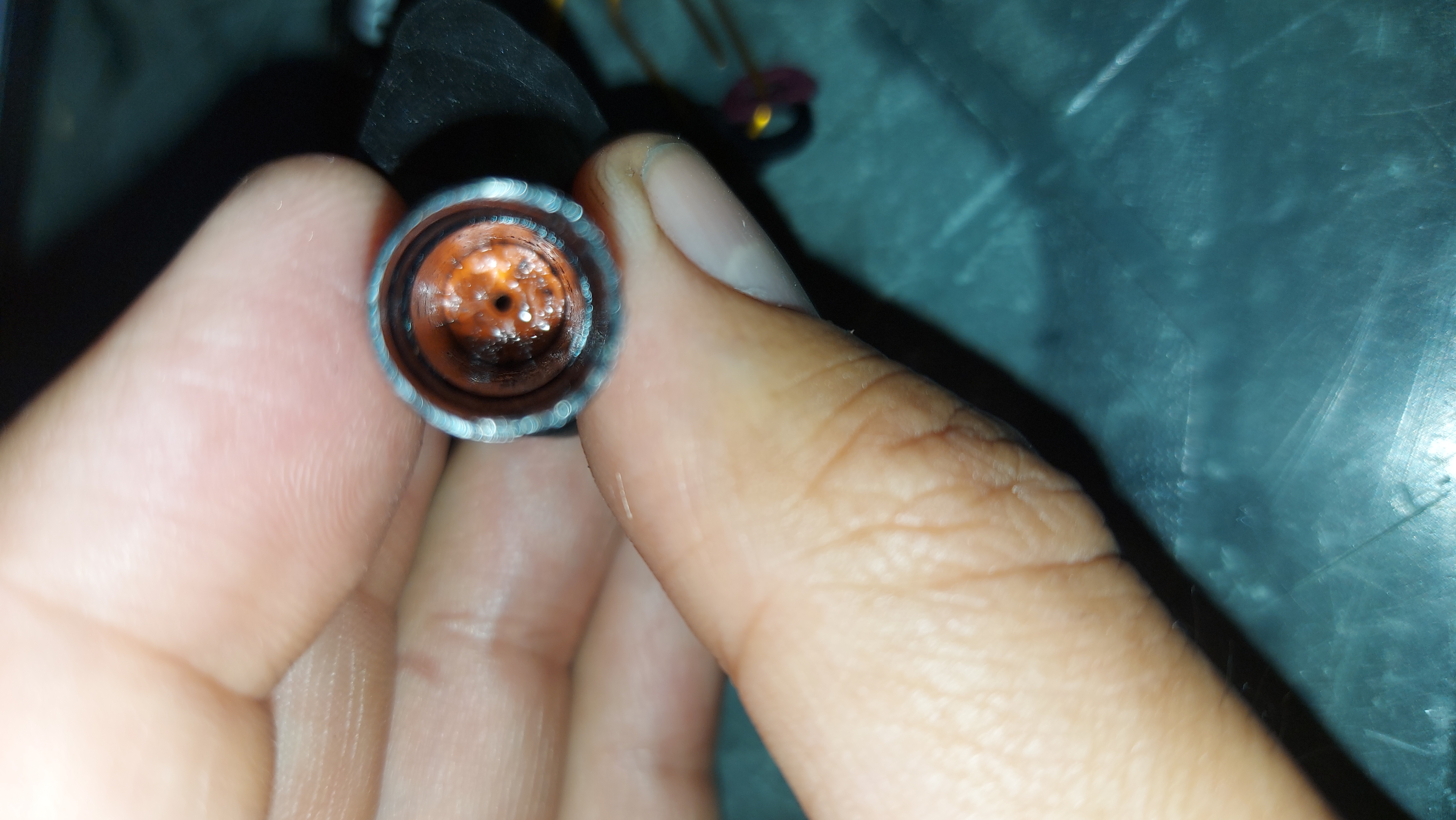 Una volta tolto il terminale nero è uscita anche la rondella, si vede nella foto dopo il distacco.