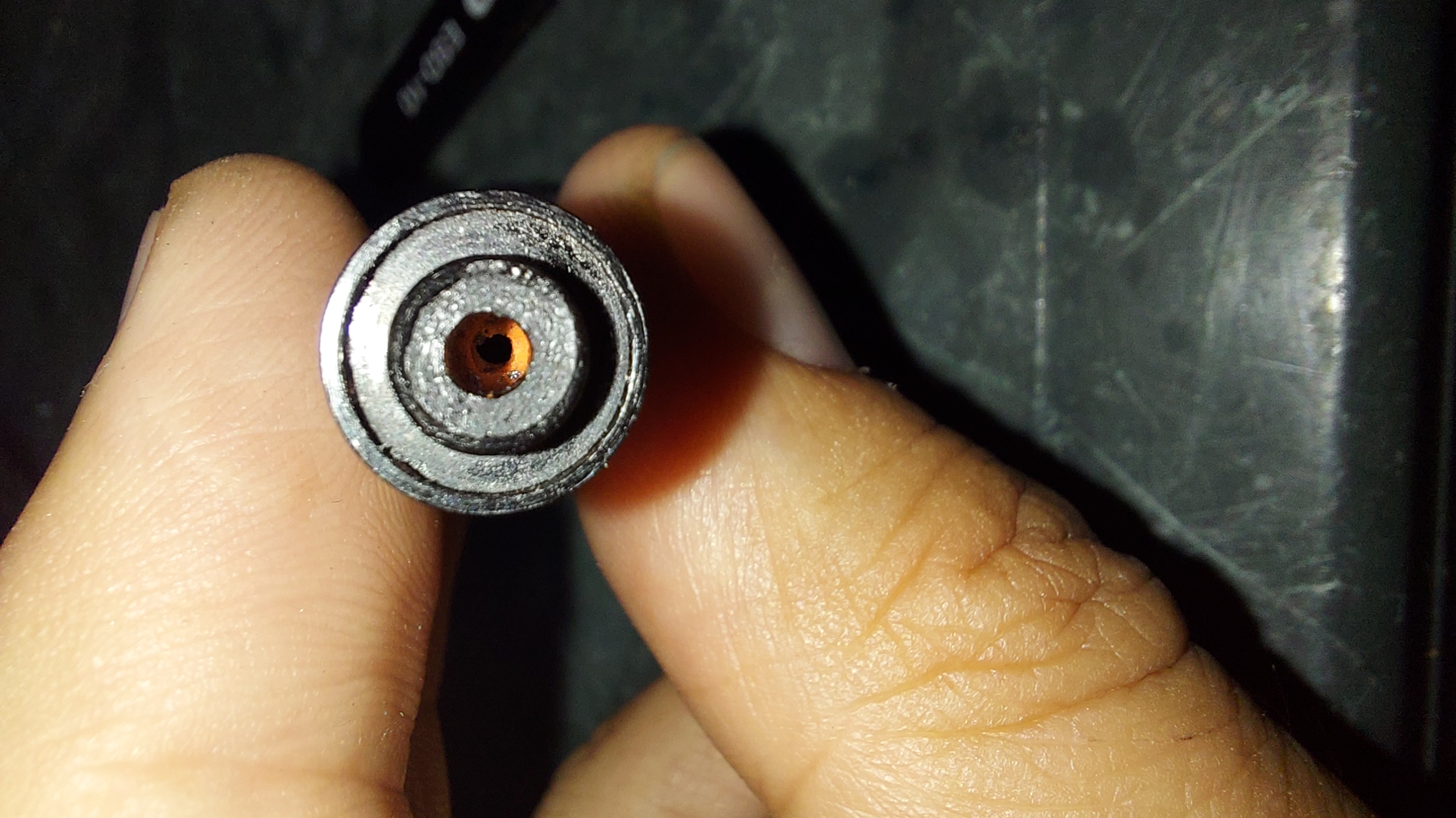 La rondella svasata c'è anche in quella di Gfrico, ma dato che il suo serbatoio aveva il fondo intatto e dato che la rondella non passa attraverso la sezione, quando ha sfilato l'asta è rimasta nel serbatoio.