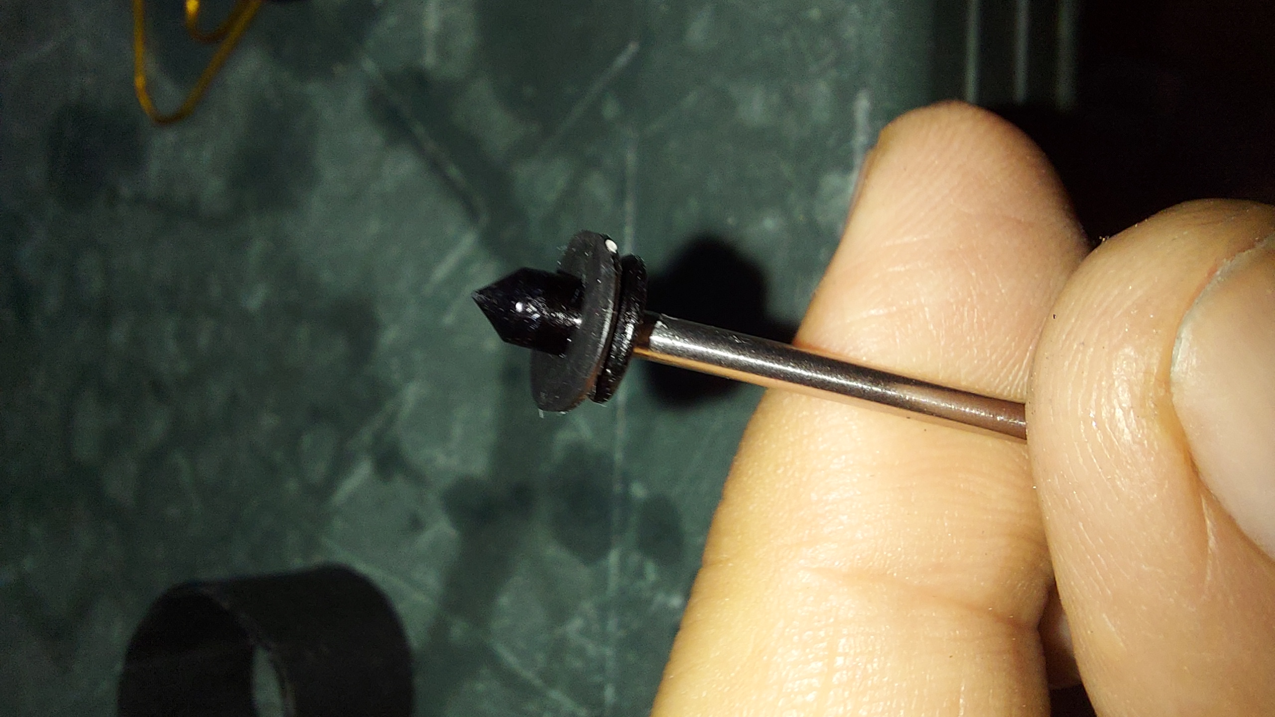 Quando poi ha reinserito l'asta ha dovuto sicuramente ingegnarsi per fare in modo che la rondella si reinfilasse, e girata correttamente oltretutto.