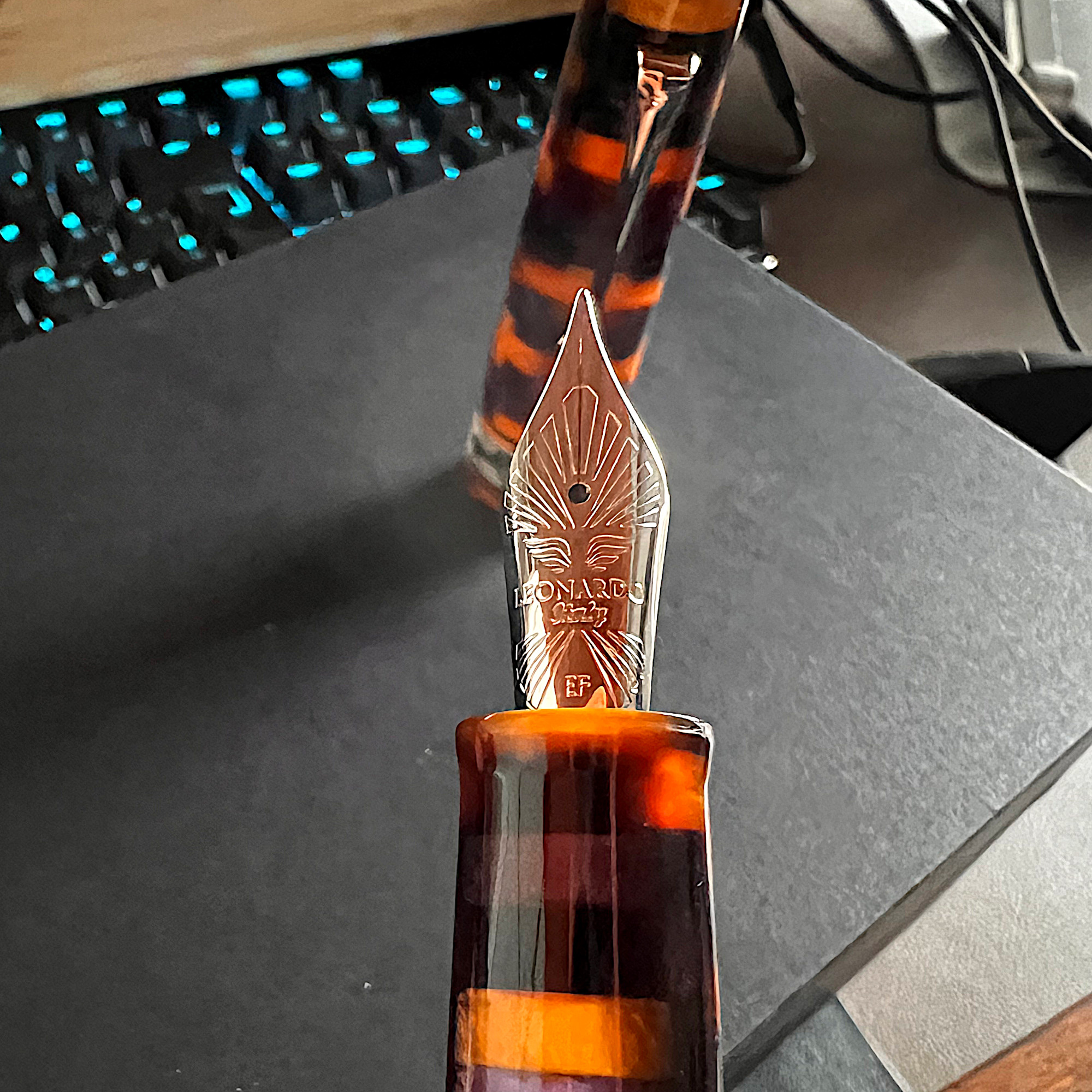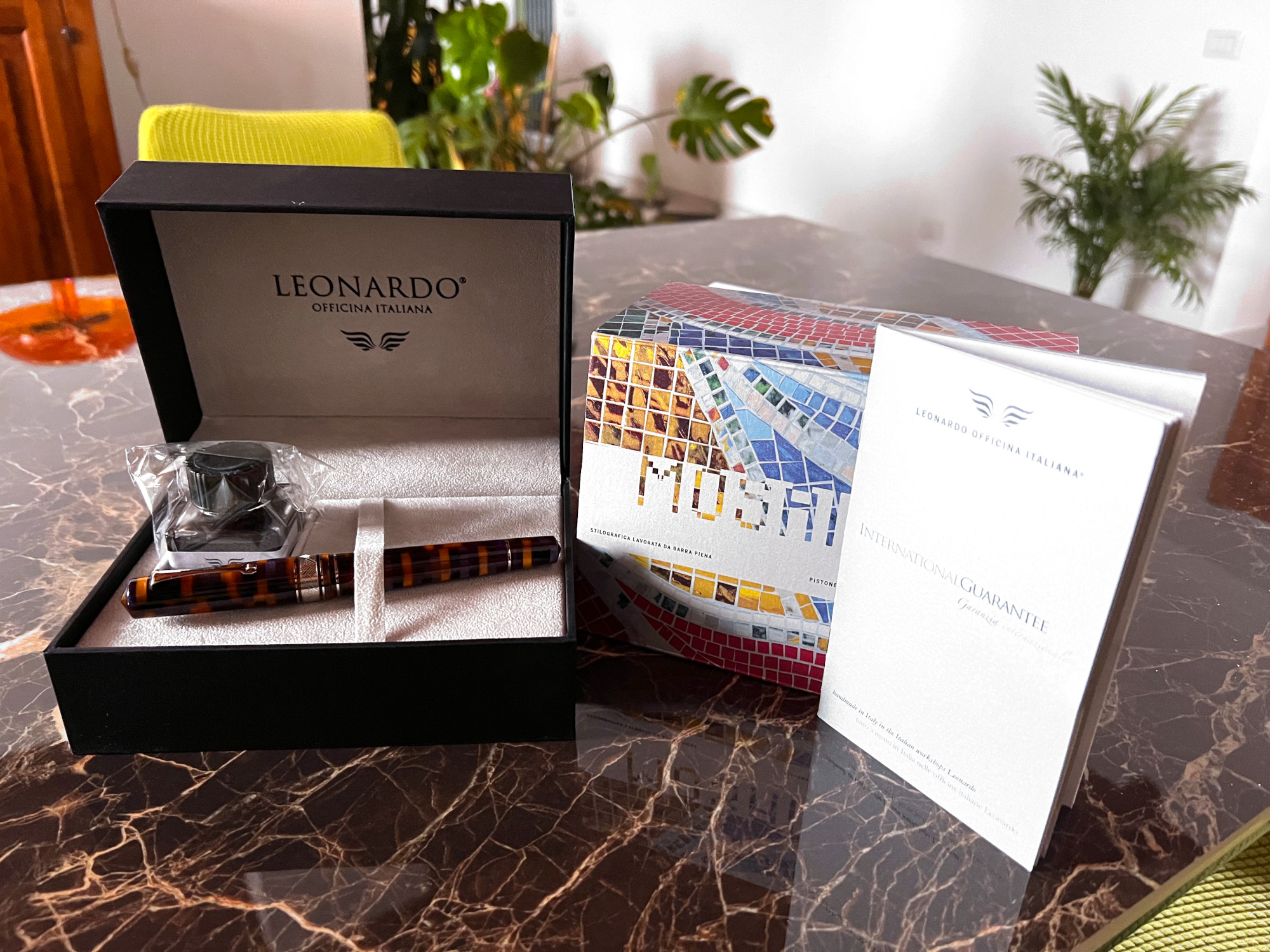Carissimo, sono felice per te! Come ho scritto l'unica Leonardo che ho posseduto è stata proprio una MZG Mosaico, in colorazione Hawaii, ma l'ho scambiata perché troppo grande per le mie mani. Meno male che ti trovi bene con la misura, Leonardo punta quasi tutto su questo modello per le sue edizioni speciali e limitate, sul loro sito trovi le edizioni speciali in ebanite, celluloide, laccate urushi ecc. (Ovviamente si sale un bel po' di prezzo, però quelle hanno il pennino in oro). Un po' ti invidio perché la resina mosaico piaceva anche a me tantissimo, ma vista la scomodità per le mie manine sarebbe rimasta in un cassetto o ci avrei scritto due righe ogni tanto, quindi l'ho scambiata con una penna dalle dimensioni più confacenti alla mia mano.