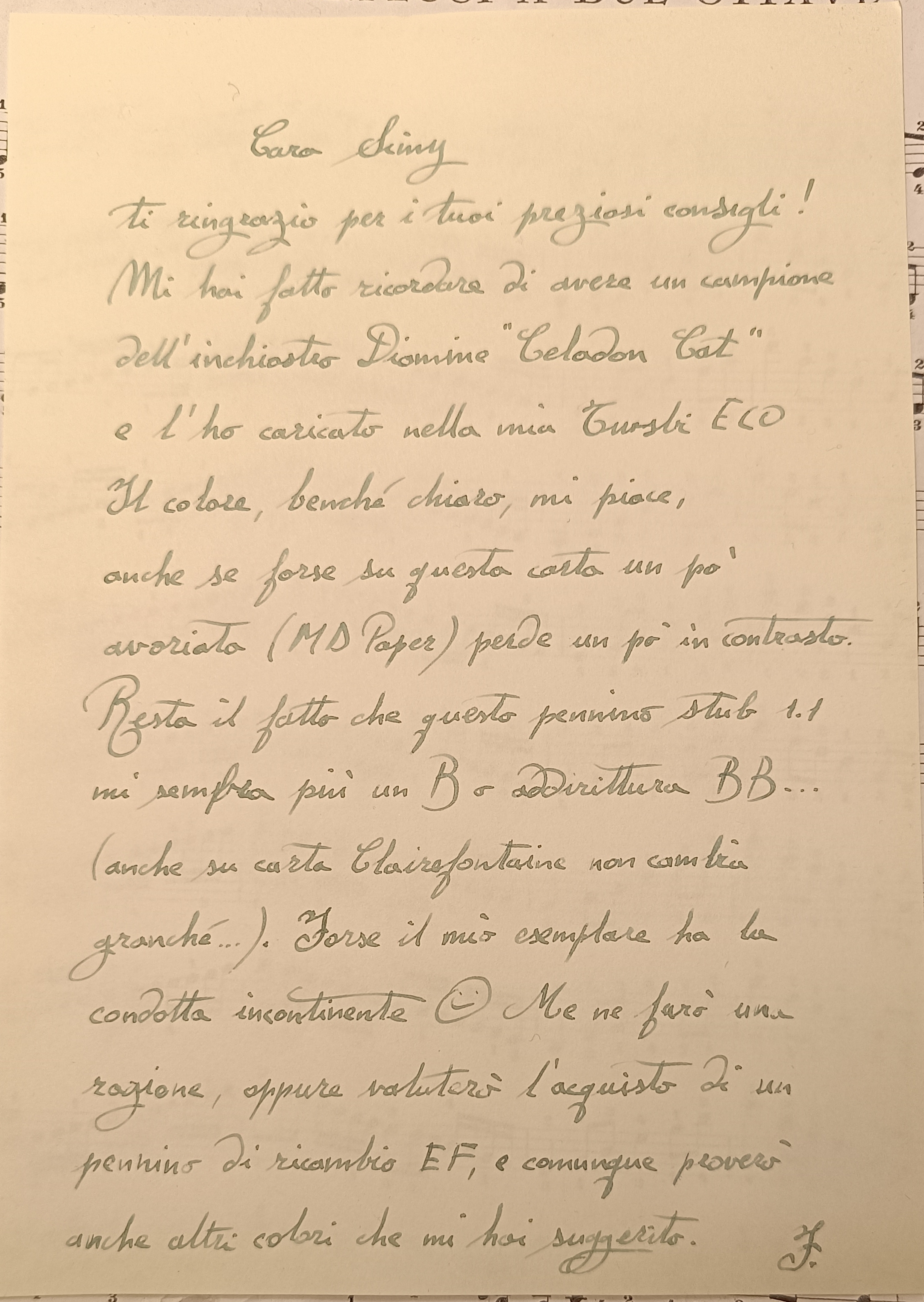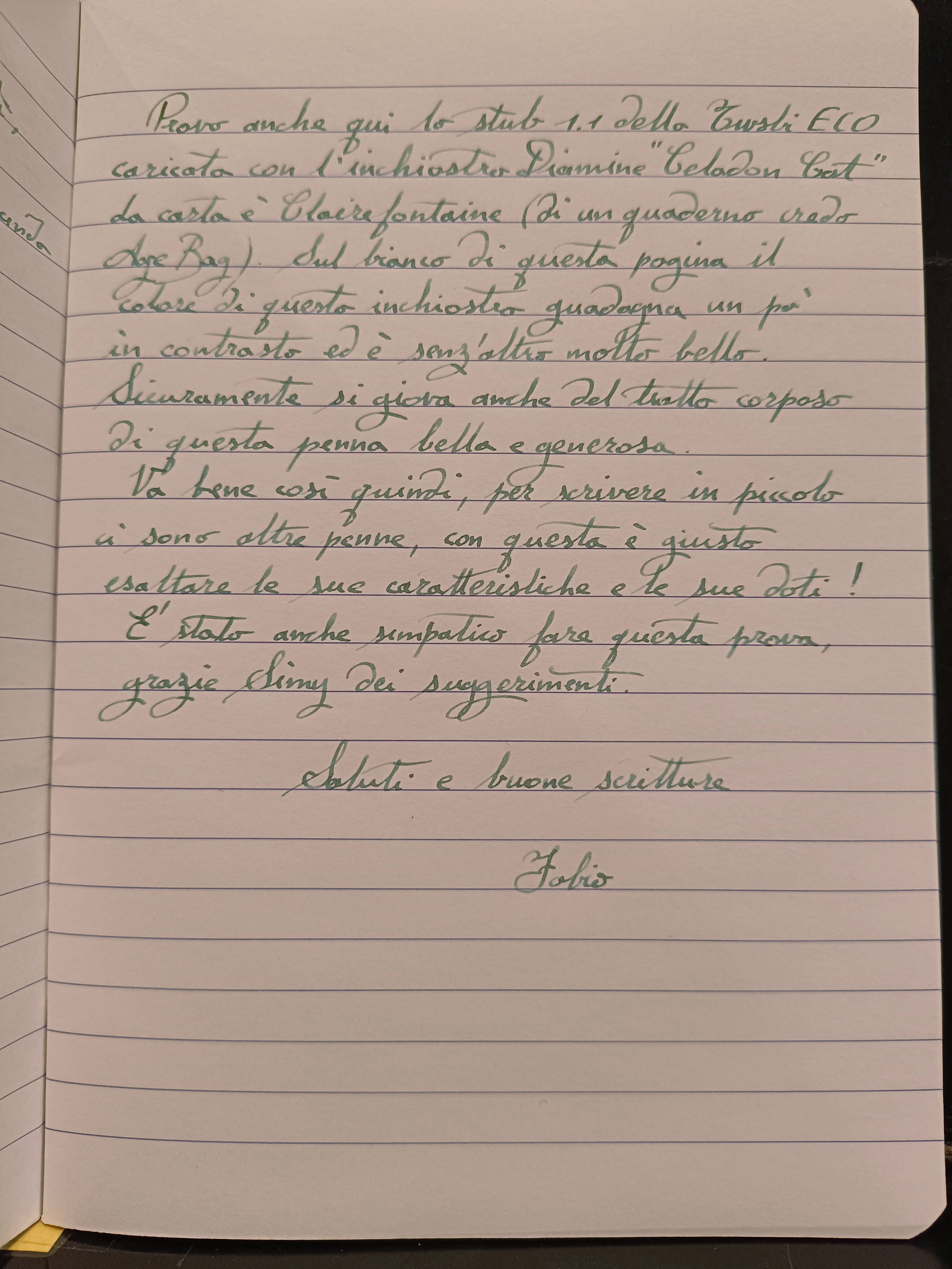 Con EF, sulla TWSBI, avresti quasi un tratto giapponese, usando Celadon Cat