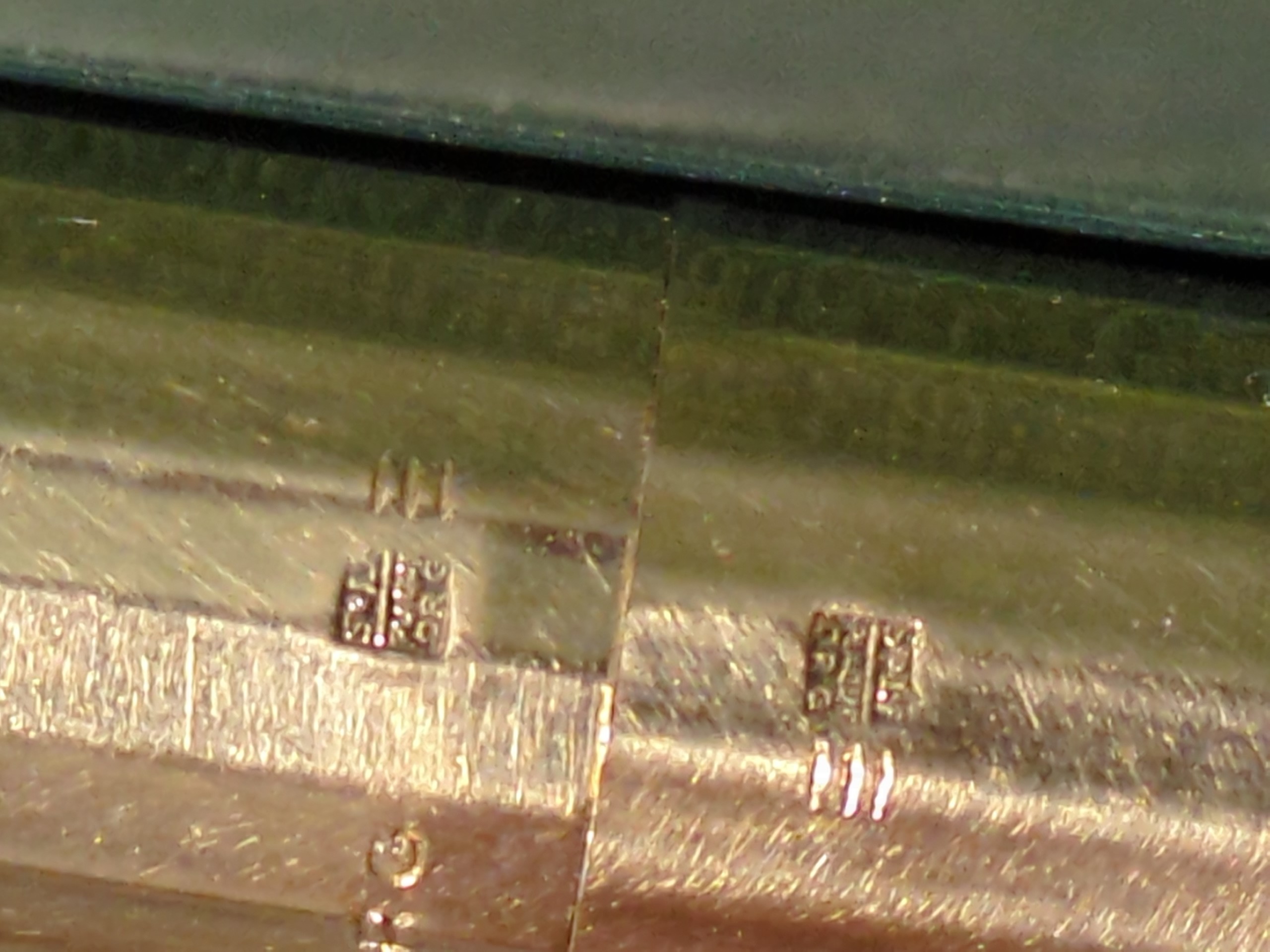 Allora, nel punzone (con molta difficoltà perché è davvero piccolissimo): in alto sembra una sigla "SioL" o "SoL", più sotto, su due righe sembra proprio "PLAQU" "OR G"