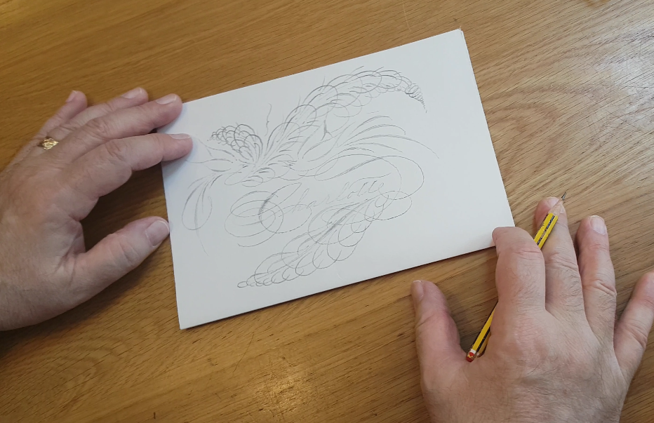 Ciro, sono felice che tu abbia inserito questo video. Che gesto carino da parte di Michael Sull e la commessa... che donna fortunata! Come sempre ammiro la lentezza nell'esecuzione, la concentrazione che essa richiede, quel silenzio intimo in cui il Calligrafo sprofonda perché per lui, in quel momento, esiste solo quel foglio e quella matita. Magari, se dovessi capitarti, potresti fare una foto al lavoro finito da inserire alla fine del video per meglio apprezzarne il disegno. Grazie per aver condiviso!