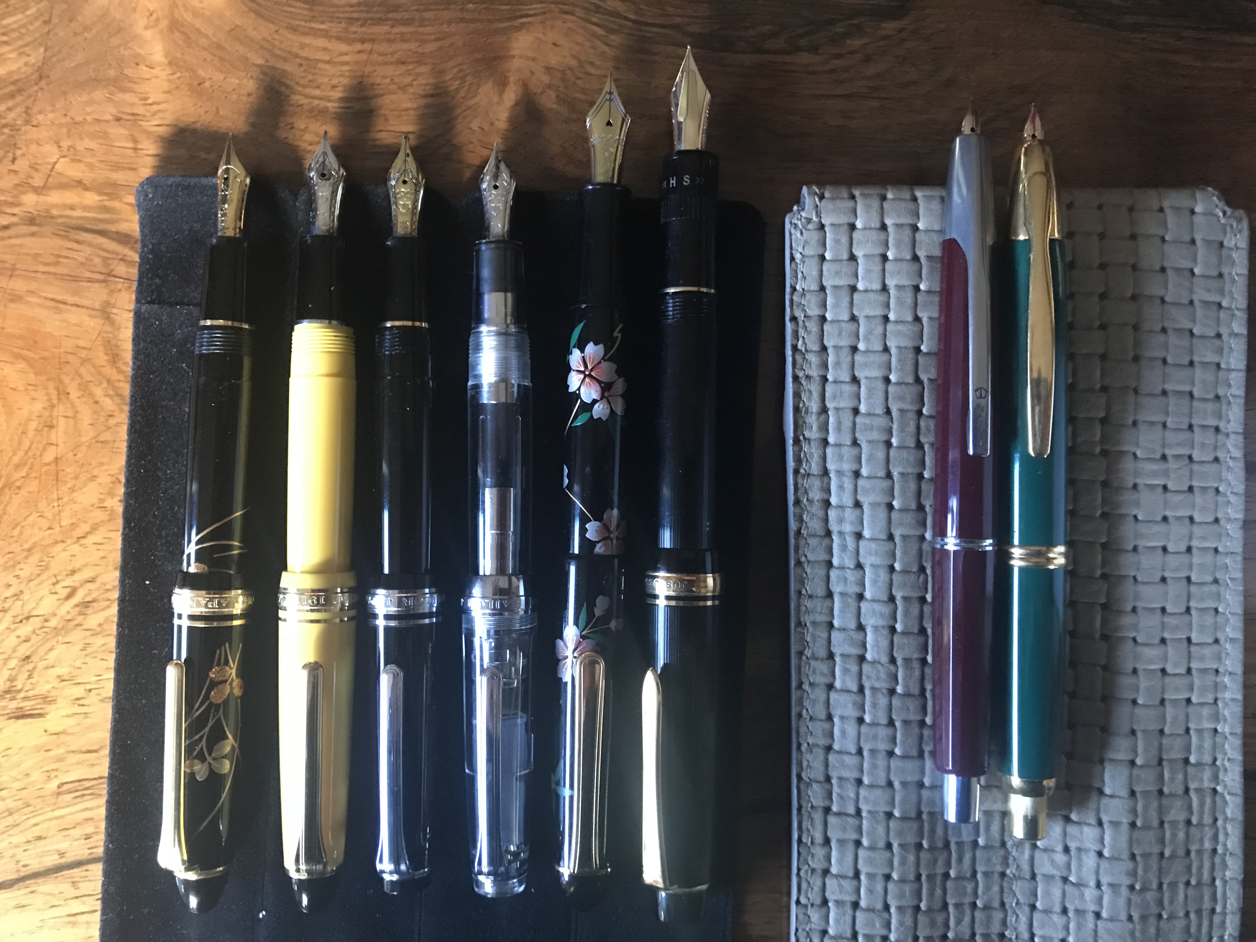 Io ho iniziato comprando una sailor demonstrator sapporo m e poi una pilot custom s .Particolari .La prima vola sul foglio. Ha il pennino 14 k .La seconda mi gratta un po ma nulla di preoccupante.Due penne però validissime e resistenti.Ciao
