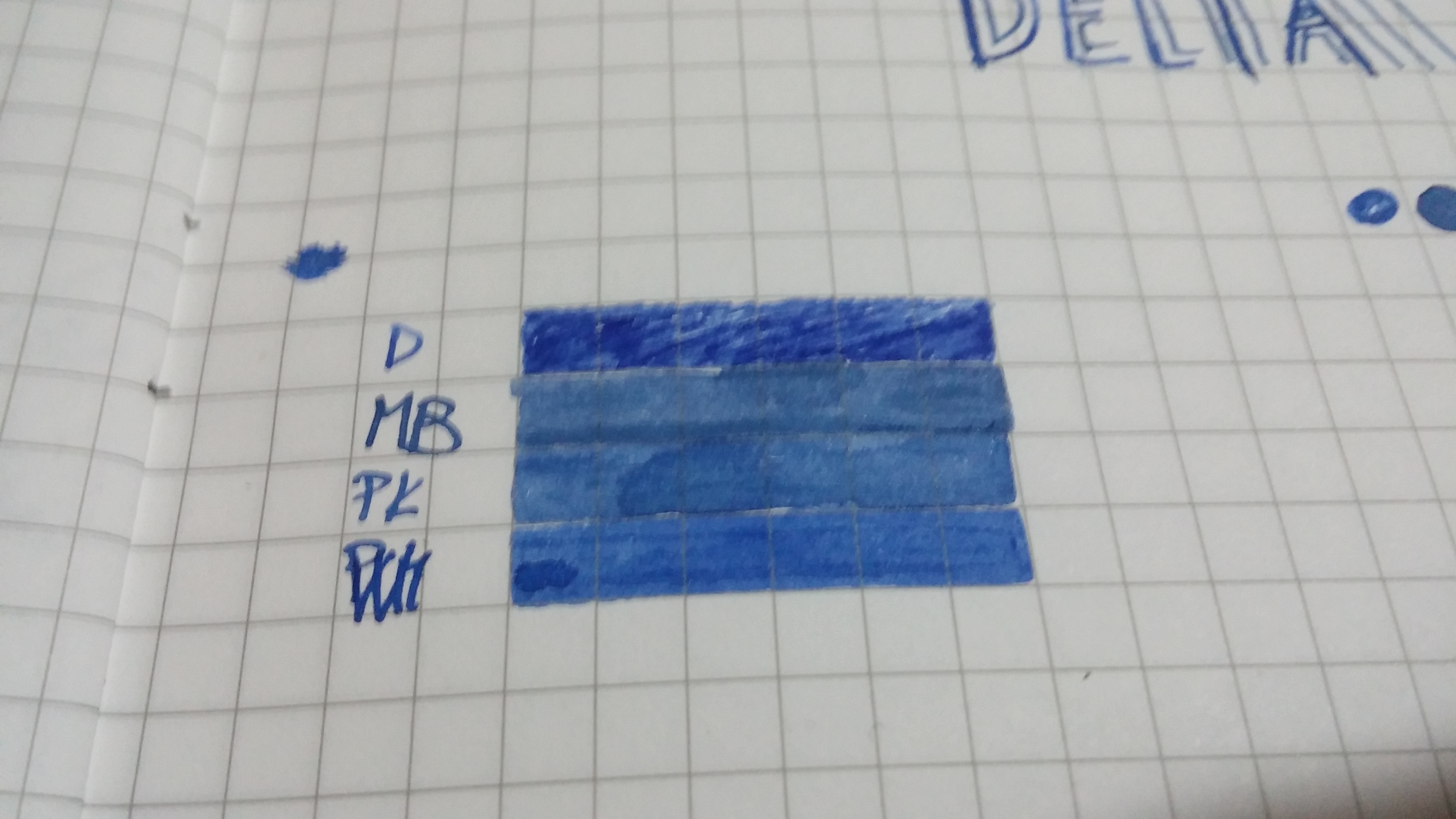 Diamine Ancient Copper, il più vivace, tende al rosso e dei tre è quello che spiuma meno. Media fluidità.